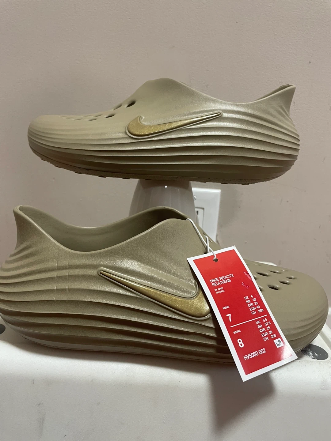 Get ready to slide into comfort with these Nike React Phantom slides in Sand Drift! They're a US size 7, perfect for a day at the beach or just lounging around. The React foam makes them super comfy and lightweight
