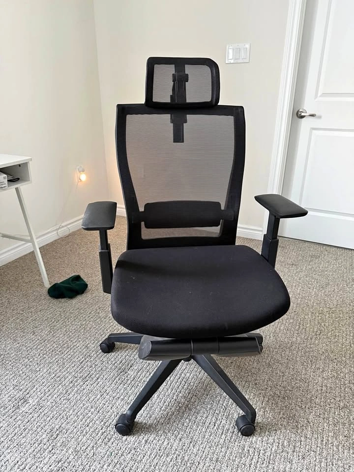 Buy & SellBlack Mesh Office Chair w Headrest FootrestBlack Mesh Office Chair w Headrest Footrest$130Ergonomic black mesh office chair with adjustable headrest and armrests. Includes a retractable footrest for extra comfort. Smooth rolling wheels.WHERE TO MEETCheck LocationView MapSELLERverifiedKaranGravenhurst620 reviews0 chats·0 favorites·3 viewsSEND CHAT TO SELLERHi Karan! I’m interested in your listing.Hi Karan! I’m interested in your listing.Get the Karrot app to chatSign In to chat
