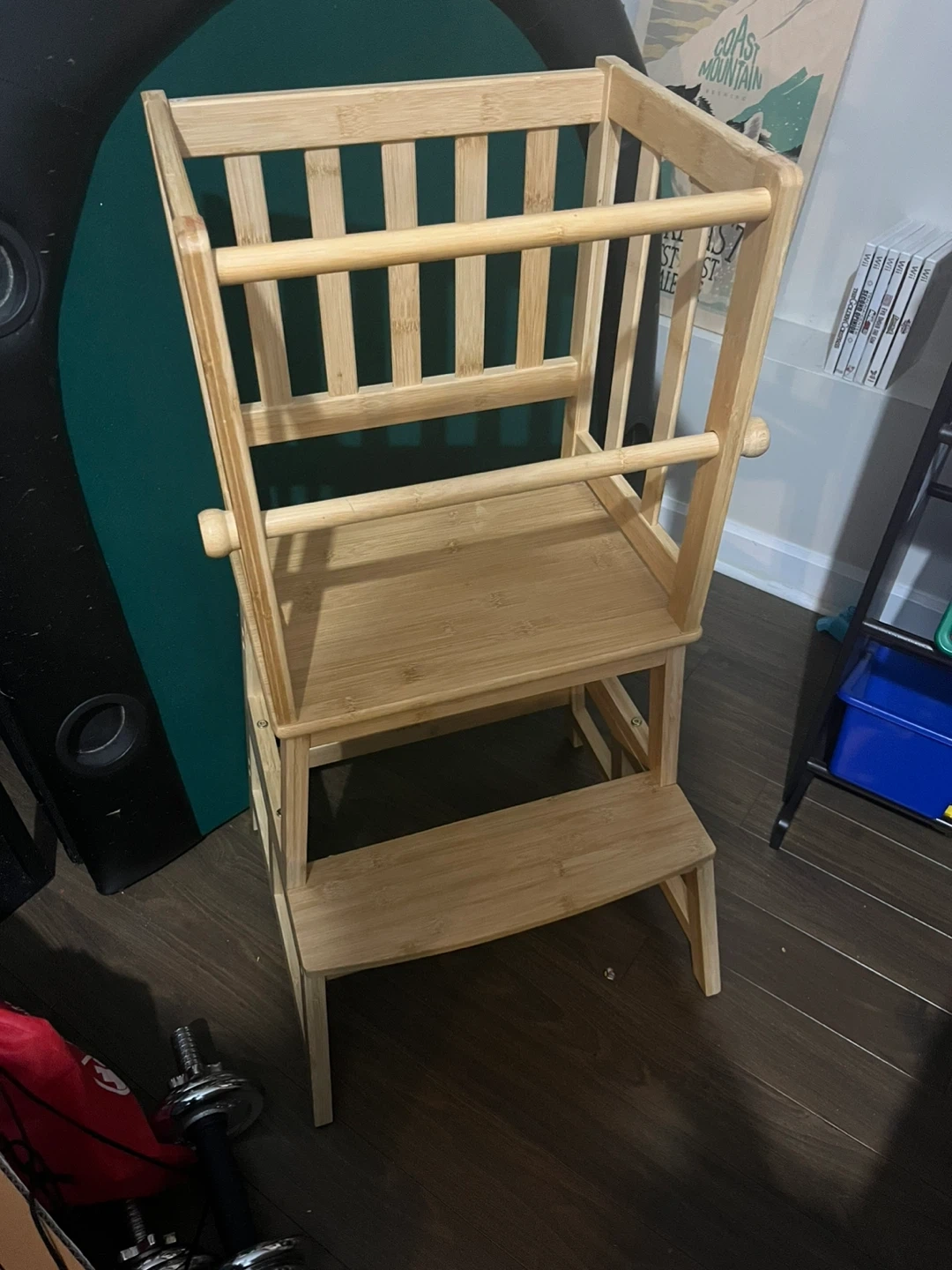 This sturdy learning tower is crafted from natural bamboo. It's perfect for letting little ones reach the counter safely for baking or other kitchen activities. The multi-level design offers adjustable heights. Sorry, no trades.