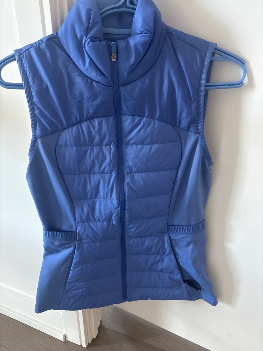 Selling a Lululemon Down for It All Vest in size 4. It's a beautiful blue colour and in great condition! The body is made of 90% nylon and 10% elastane, with a body filling of 85% white goose down and 15% white goose feathers. Designed in Vancouver and made in Vietnam. PRICE IS FIRM!!!