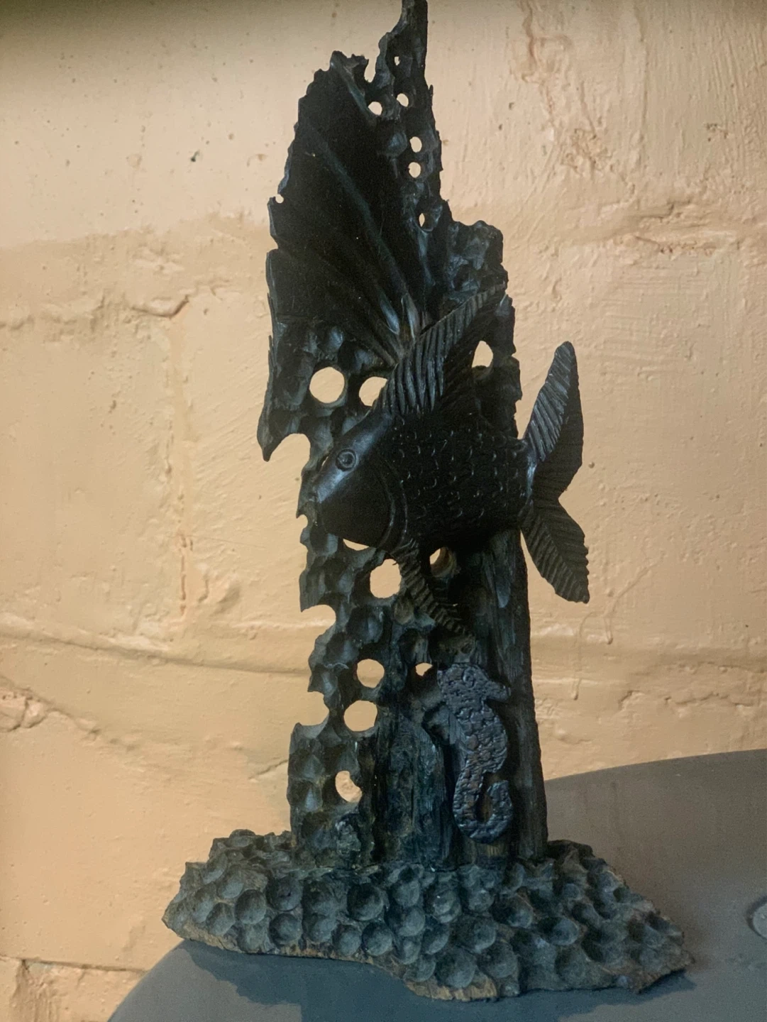 Hand Carved Fish and Seahorse Sculpture
