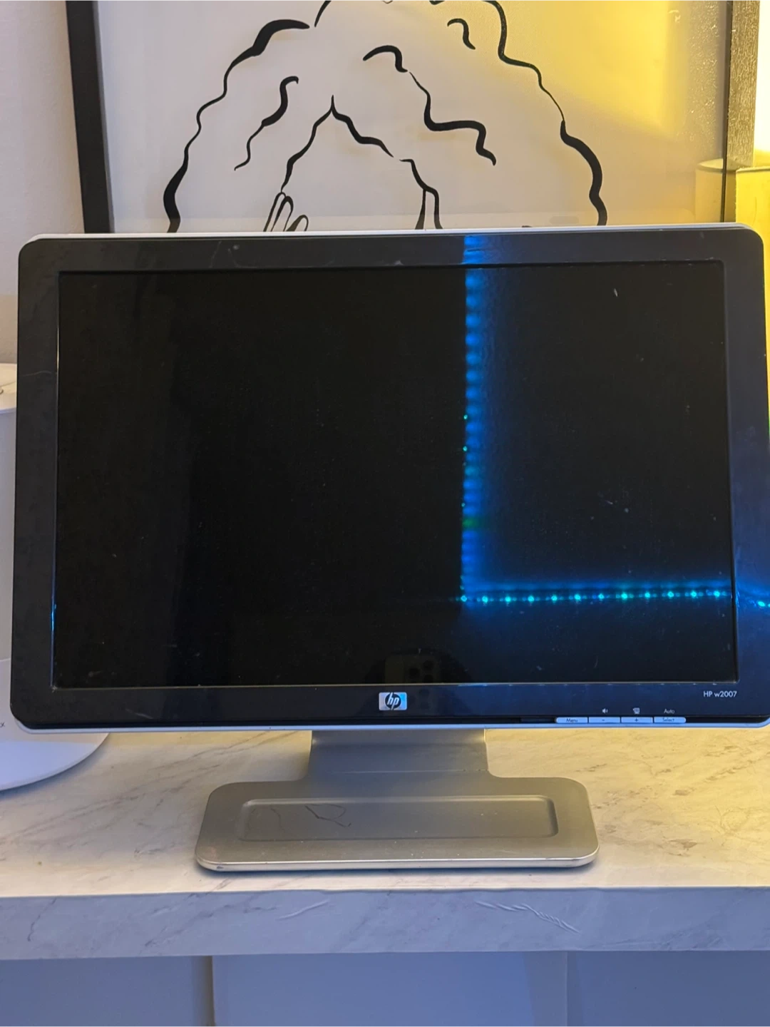 HP W2007 monitor with DVI and VGA inputs. It's a 20-inch display. This monitor is great for everyday computing tasks.