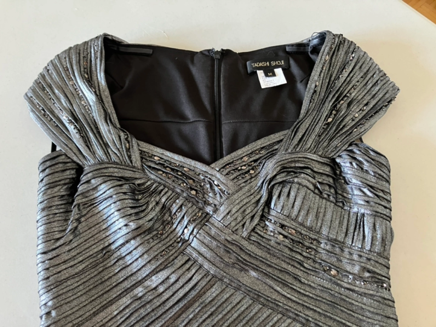 Tadashi Shoji Silver Pleated Dress Sz M
