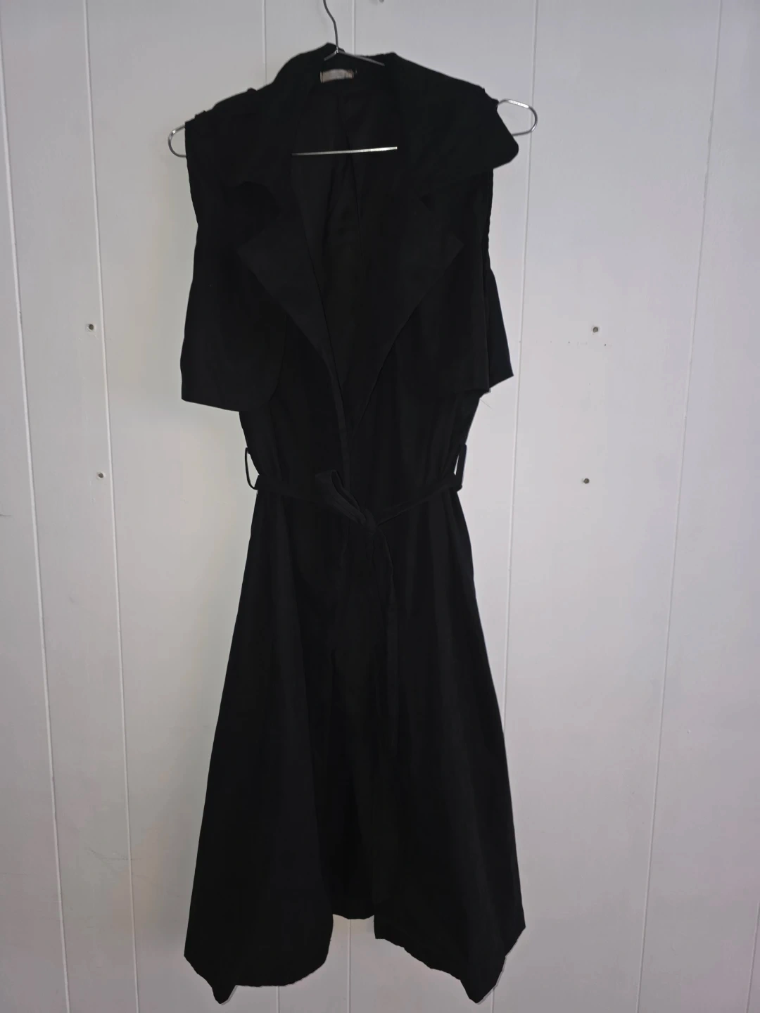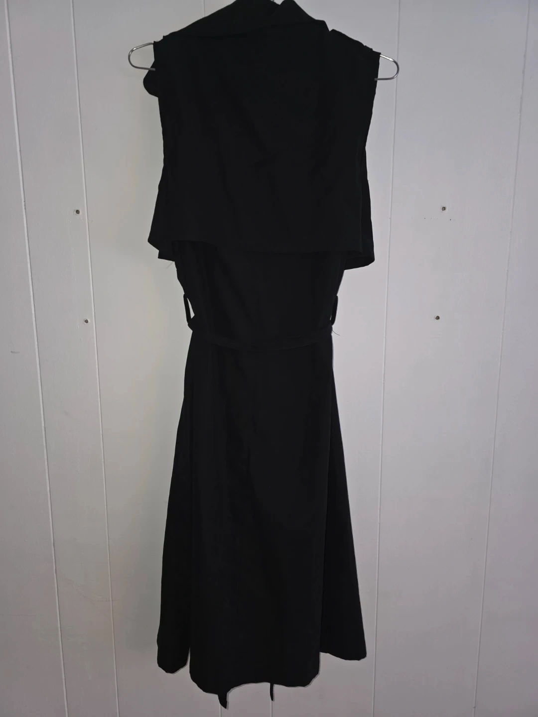 Selling a stylish black sleeveless trench dress. It's in great condition and ready for a new wardrobe. Perfect for layering or wearing on its own during warmer weather!