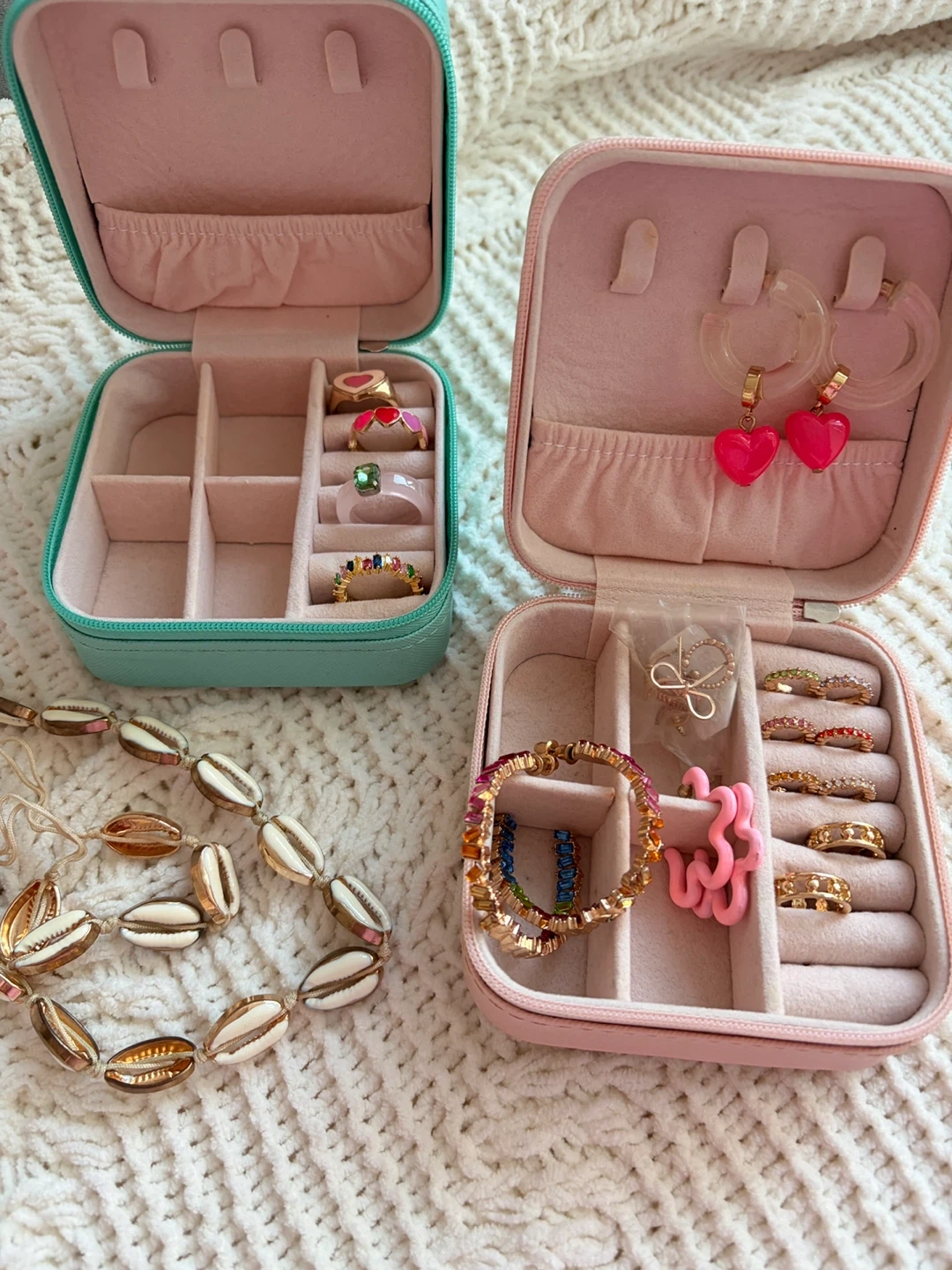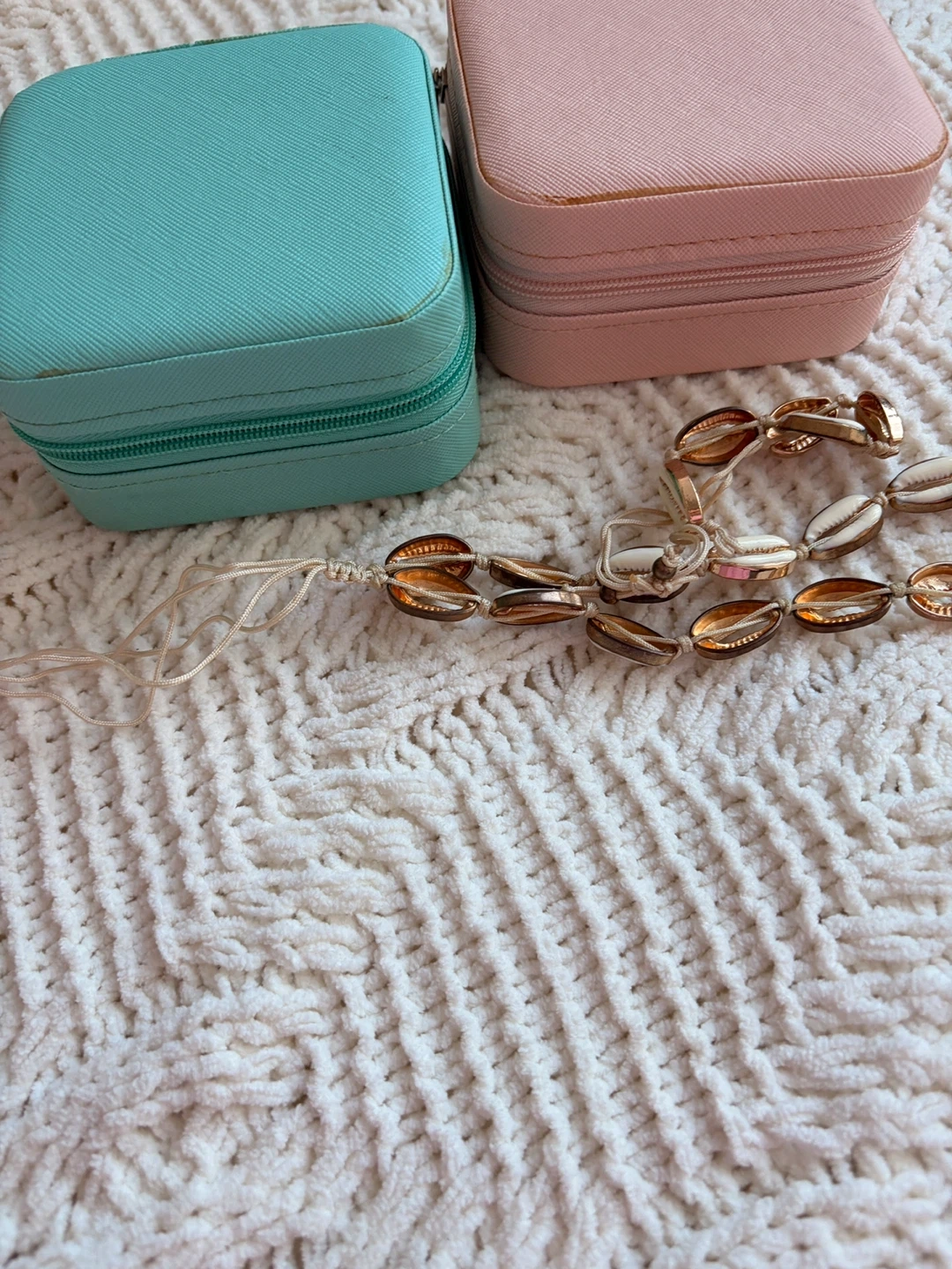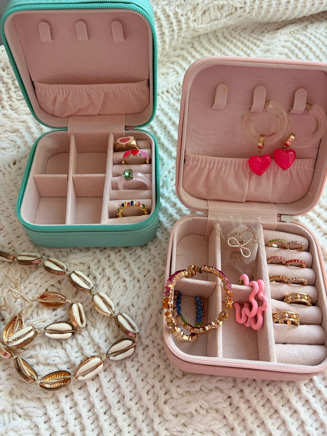 • 2 zip travel jewelry boxes (Tiffany blue & dusty pink)