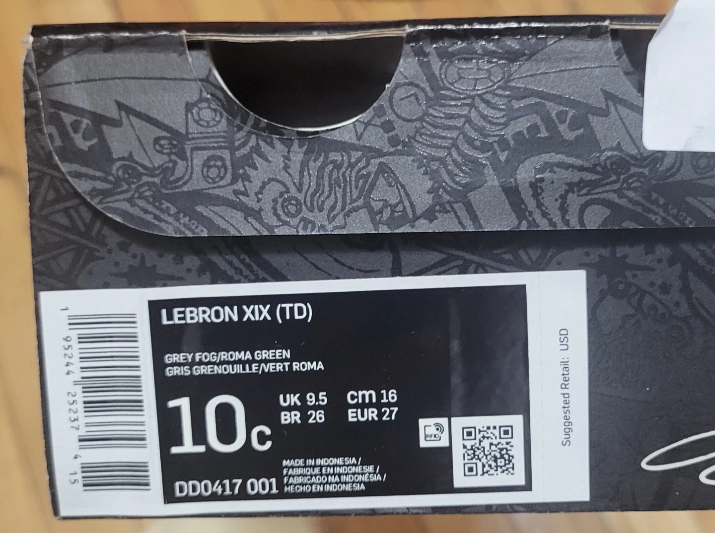 Nike LeBron XIX TD "Grey Fog/Roma Green" Toddler Shoes 10c