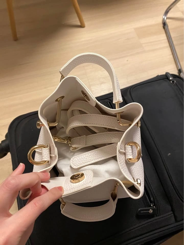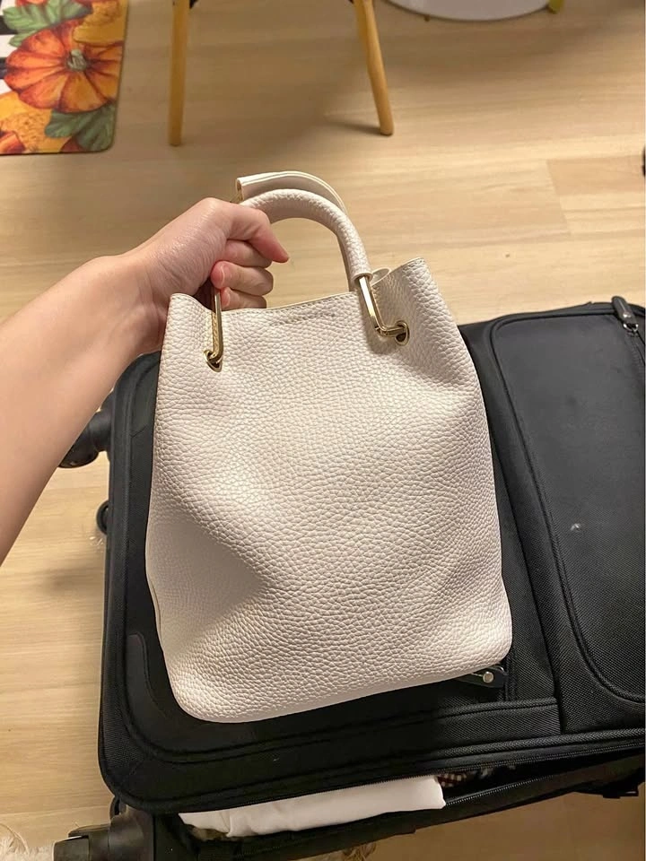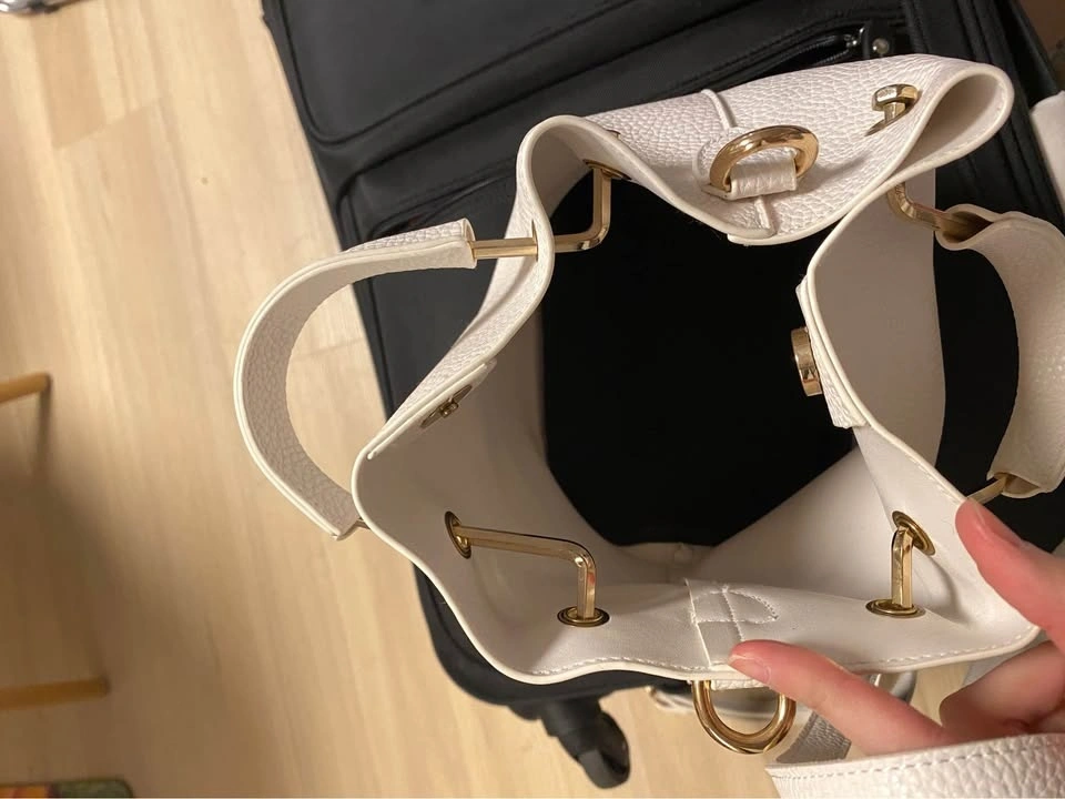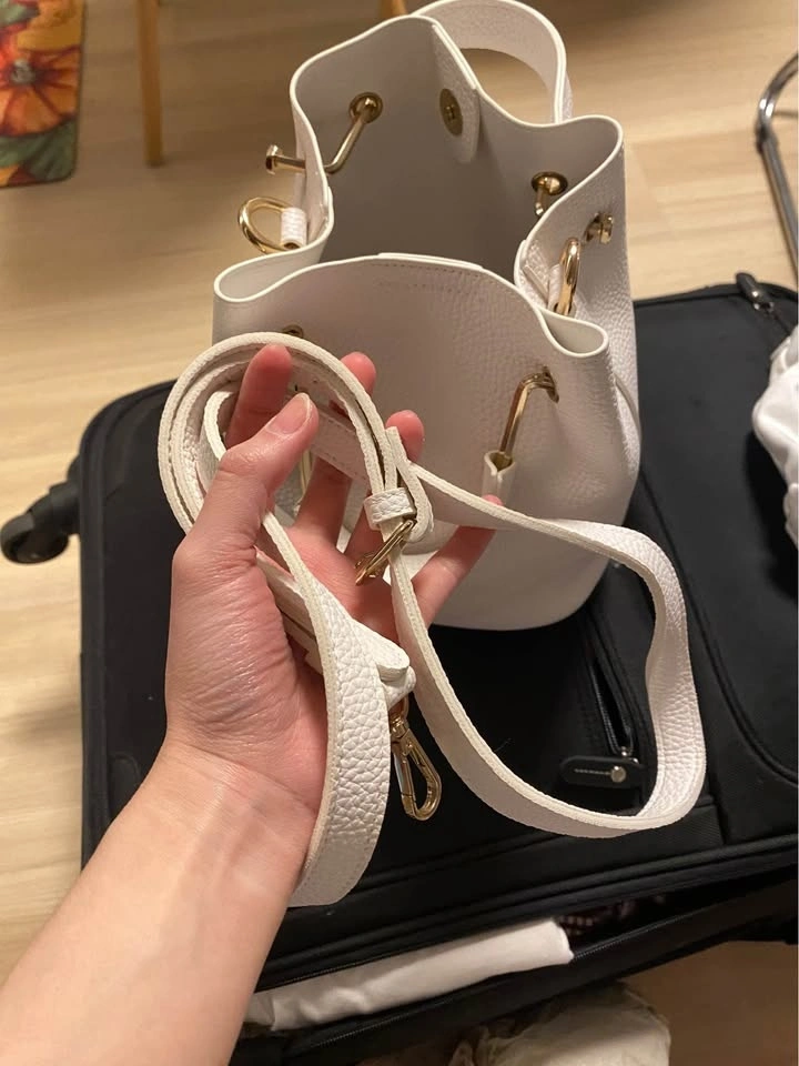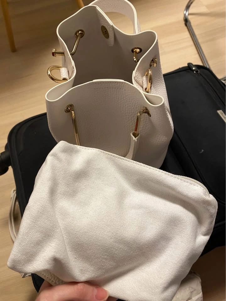 I only used this once. It's completely new with no defects. The bag can hold a lot of stuff and comes with a small pouch and a shoulder strap for different styling options.
