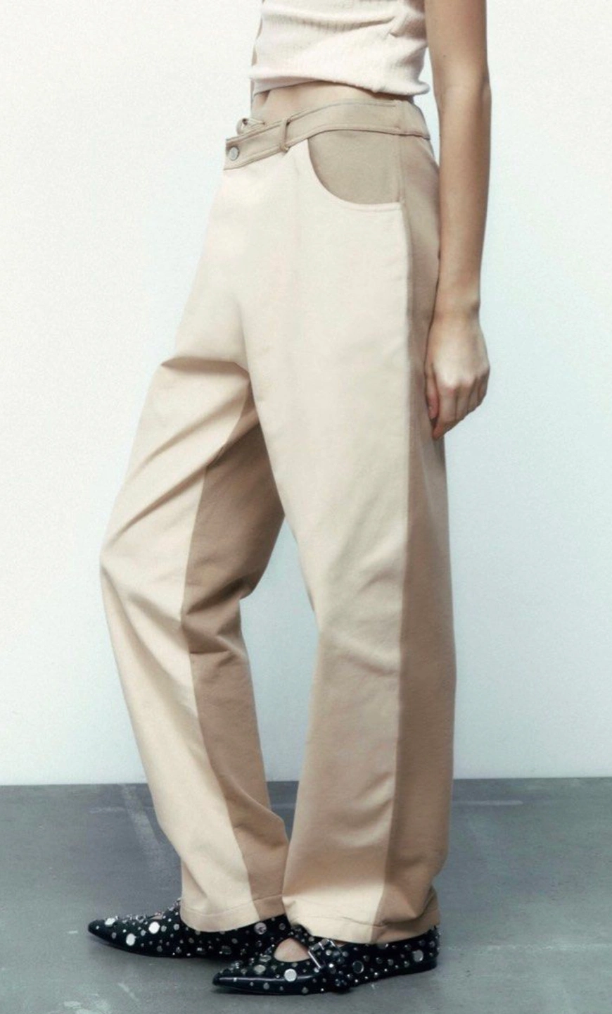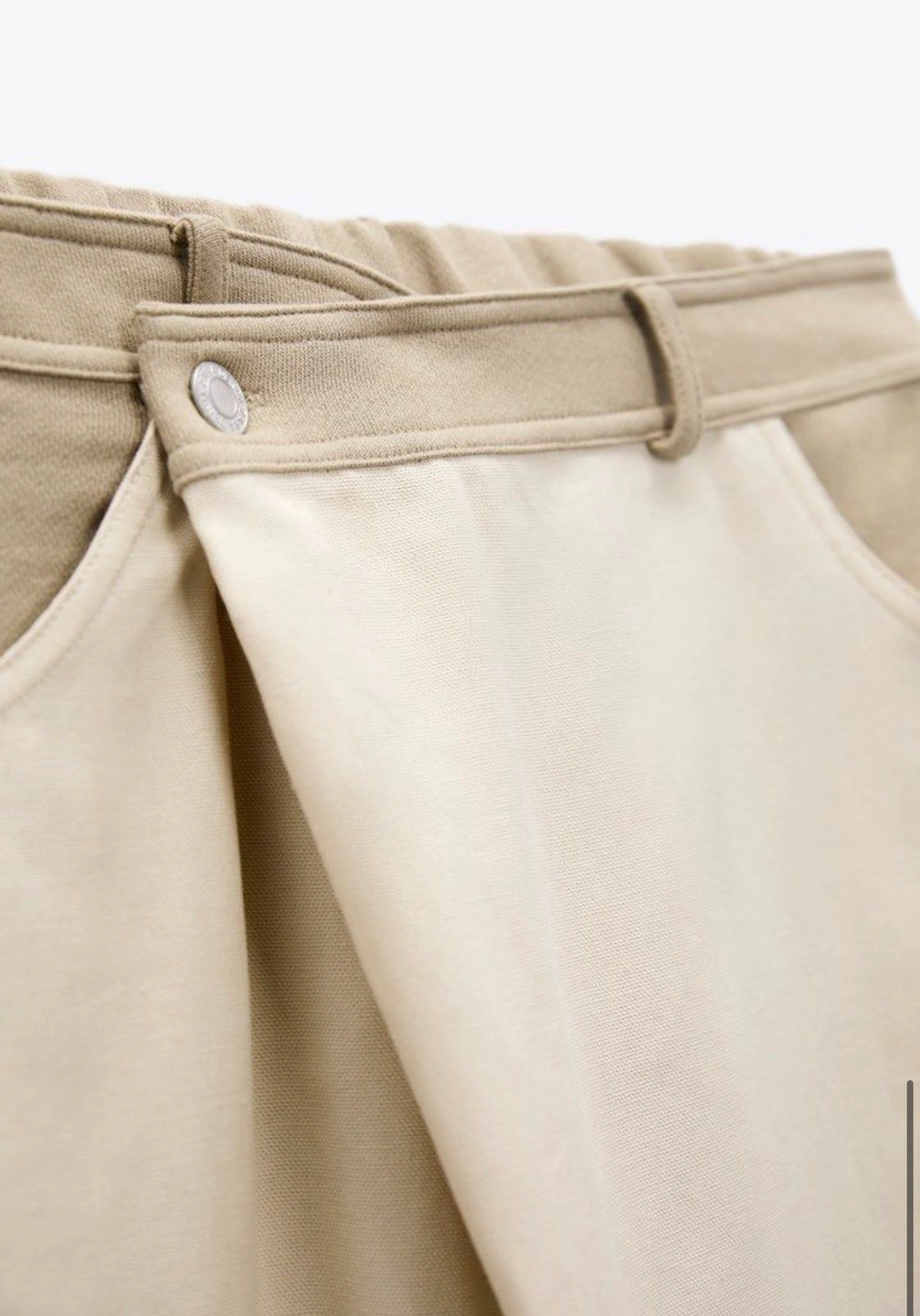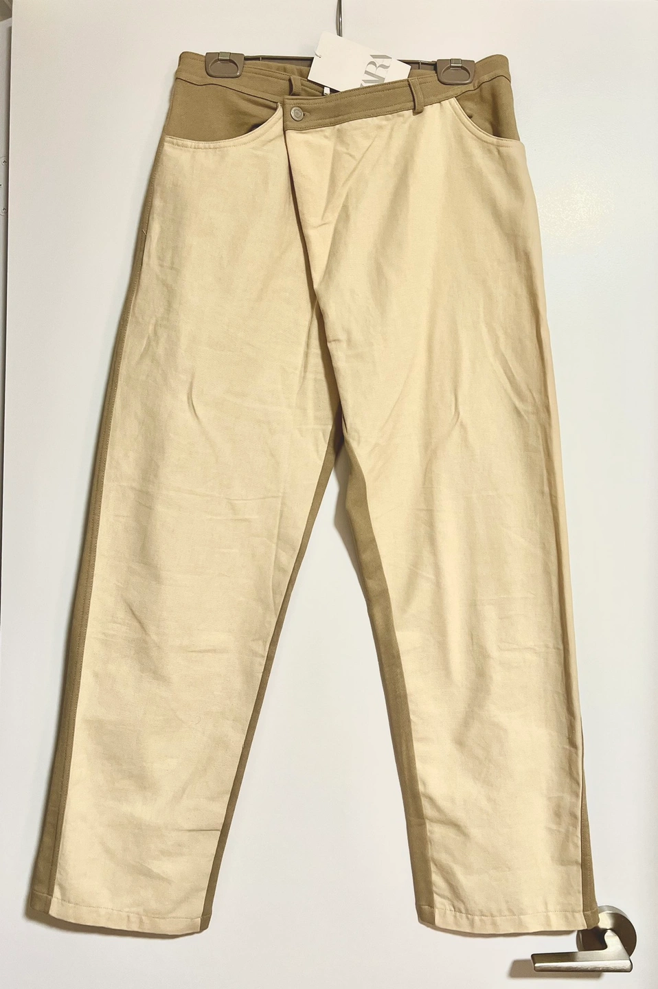 NEW Trousers Zara Denim Cross Button, Cream and Beige Size M