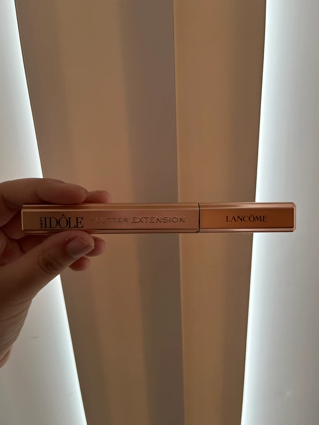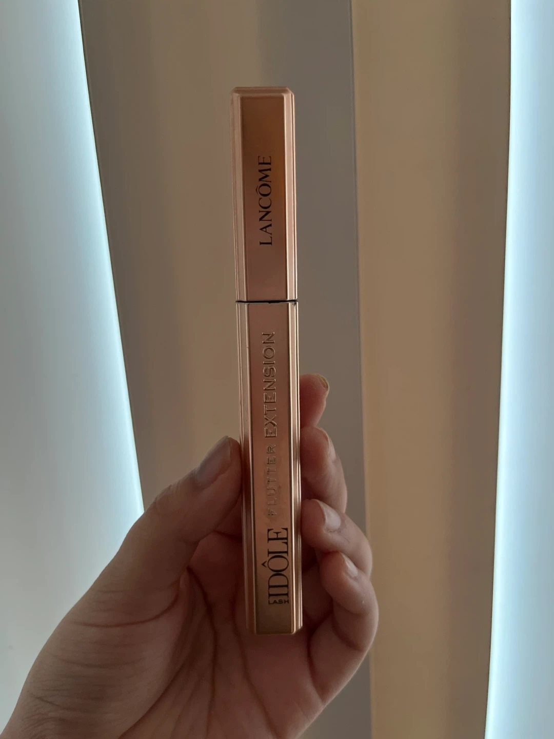 Lancôme Idôle Flutter Extension mascara in a rose gold tube. This mascara is designed for fluttery, extended lashes. It's a great addition to your makeup collection!