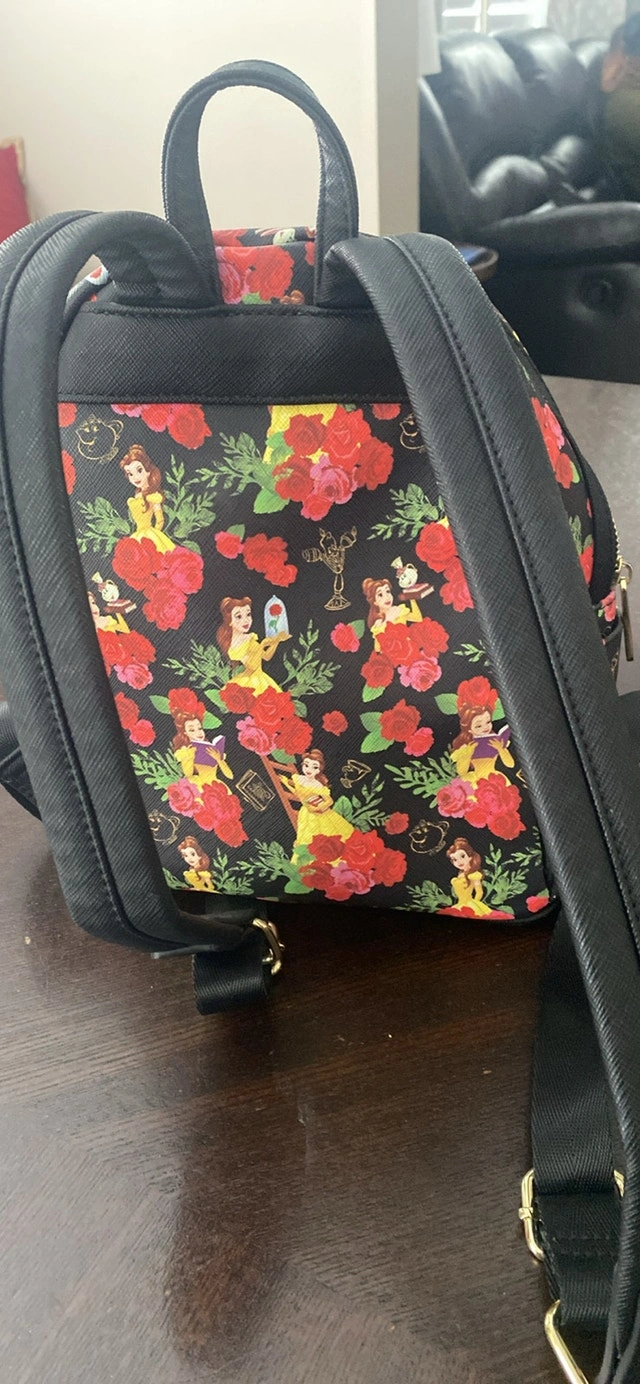 This is a Disney Loungefly backpack featuring a Beauty and the Beast floral pattern. The backpack is like new. It's perfect for any Disney fan looking to add a touch of magic to their everyday style. I have estimated the price based on similar items listed on Kijiji. If the ad is still up, it's still available!
