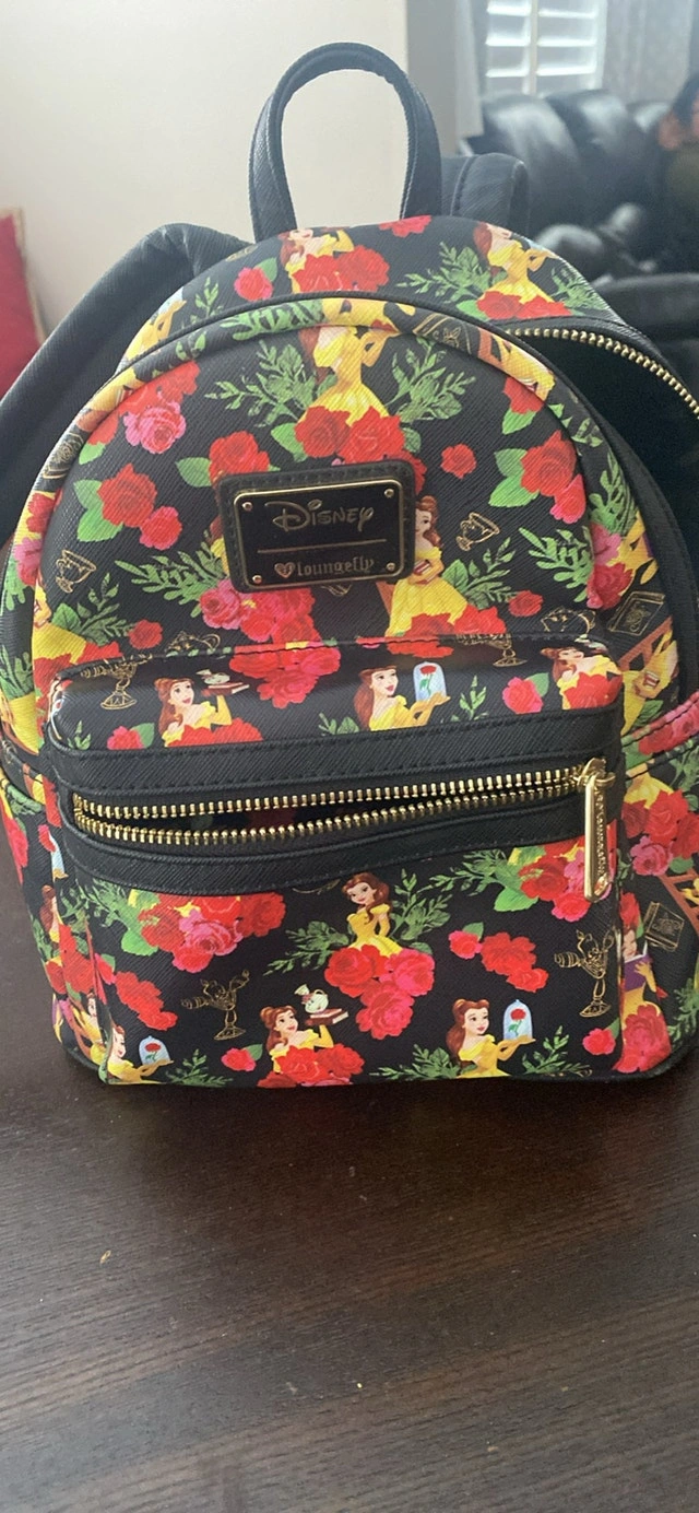 This is a Disney Loungefly backpack featuring a Beauty and the Beast floral pattern. The backpack is like new. It's perfect for any Disney fan looking to add a touch of magic to their everyday style. I have estimated the price based on similar items listed on Kijiji. If the ad is still up, it's still available!
