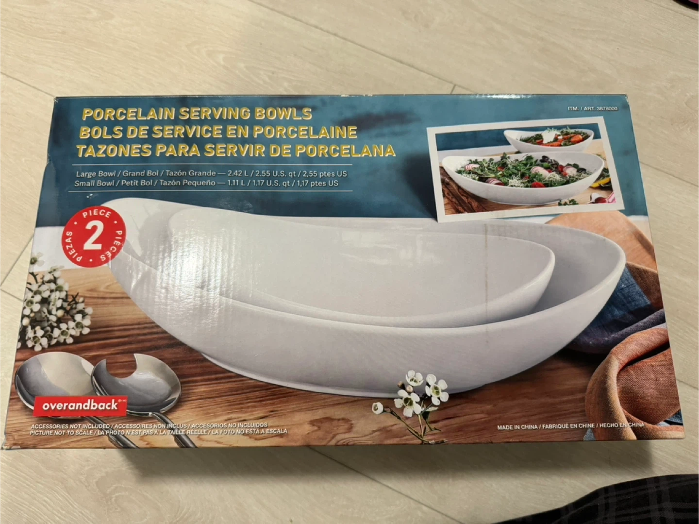 This is a 2-piece set of porcelain serving bowls from Overandback. The large bowl holds 2.42 L (2.55 U.S. qt), and the small bowl holds 1.11 L (1.17 U.S. qt). These bowls are made of porcelain. This set is useful for serving guests or family.