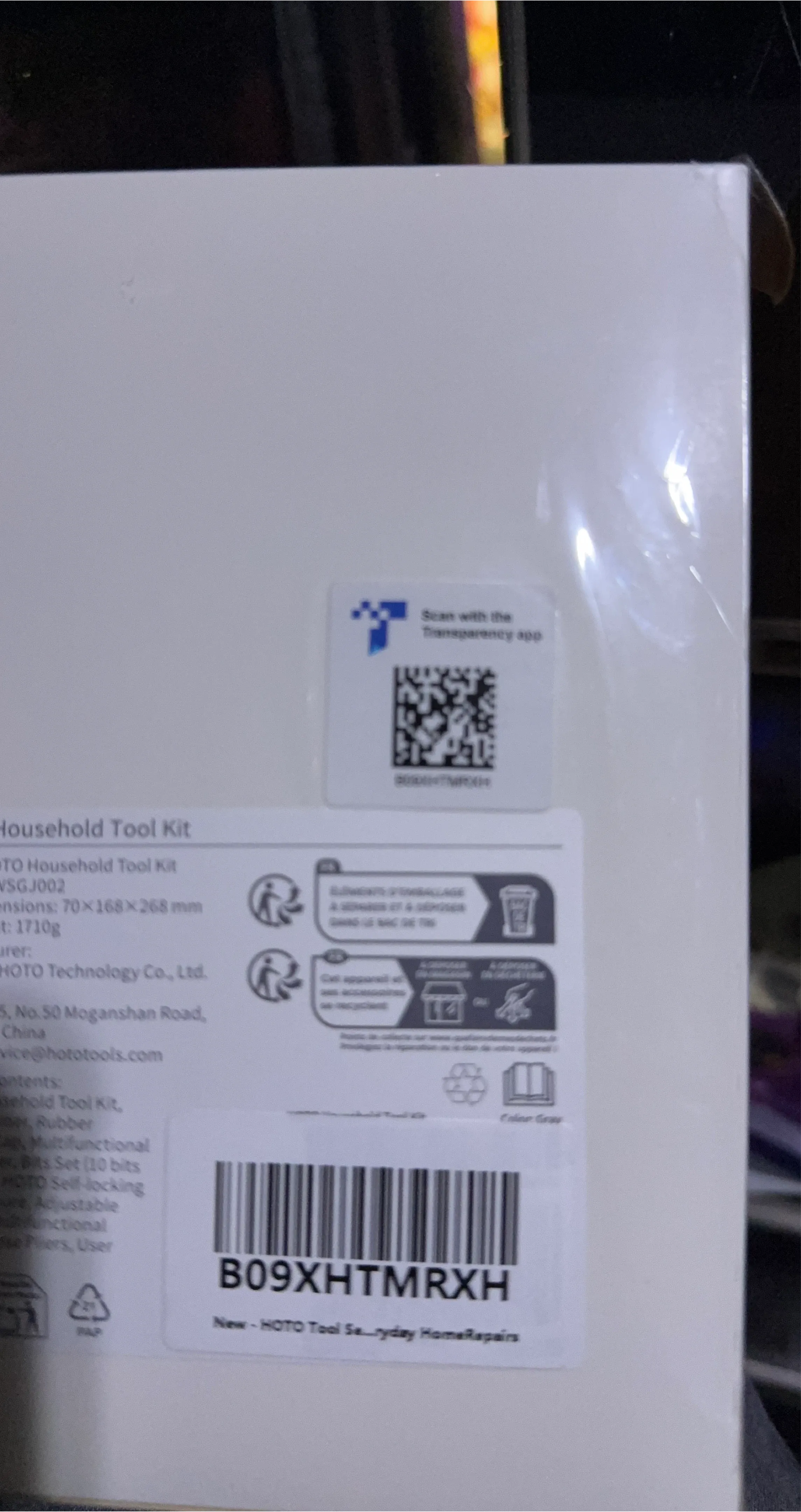 Selling a brand new HOTO Household Tool Kit! It includes the household tool kit, rubber bag, multifunctional bits set (10 bits), HOTO self-locking feature, adjustable functional pliers, and a user manual. The dimensions are 70 x 168 x 268 mm and it weighs 1710g