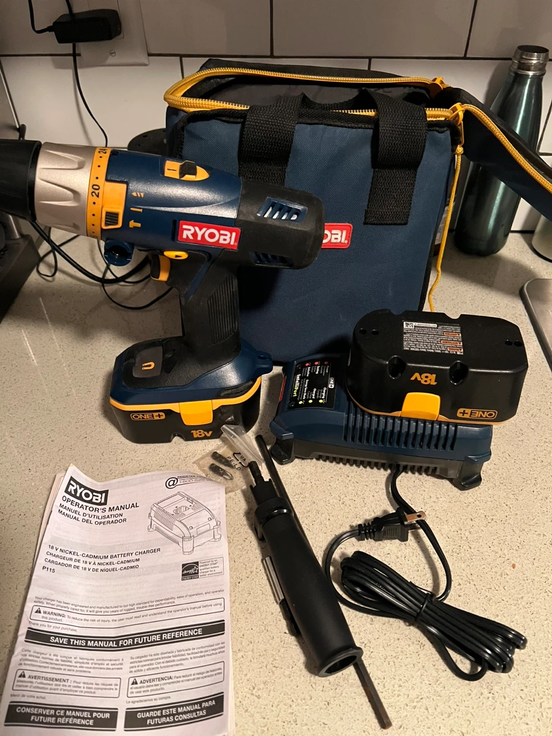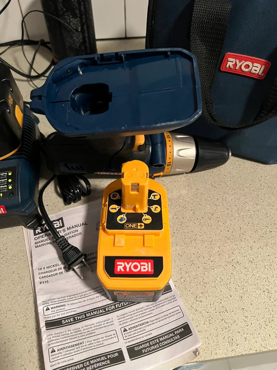 Selling a Ryobi ONE+ 18V drill kit. It comes with the battery, charger, and operator's manual. Great for various projects around the house!