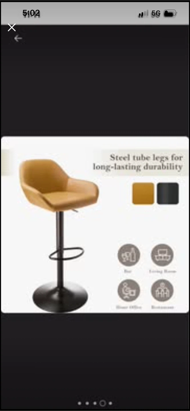 This bar stool features a comfortable, cushioned seat in a vibrant mustard yellow. It's fully adjustable and swivels for ease of use. The base is round and stable. Its sleek design makes it a great addition to any kitchen counter or home bar!