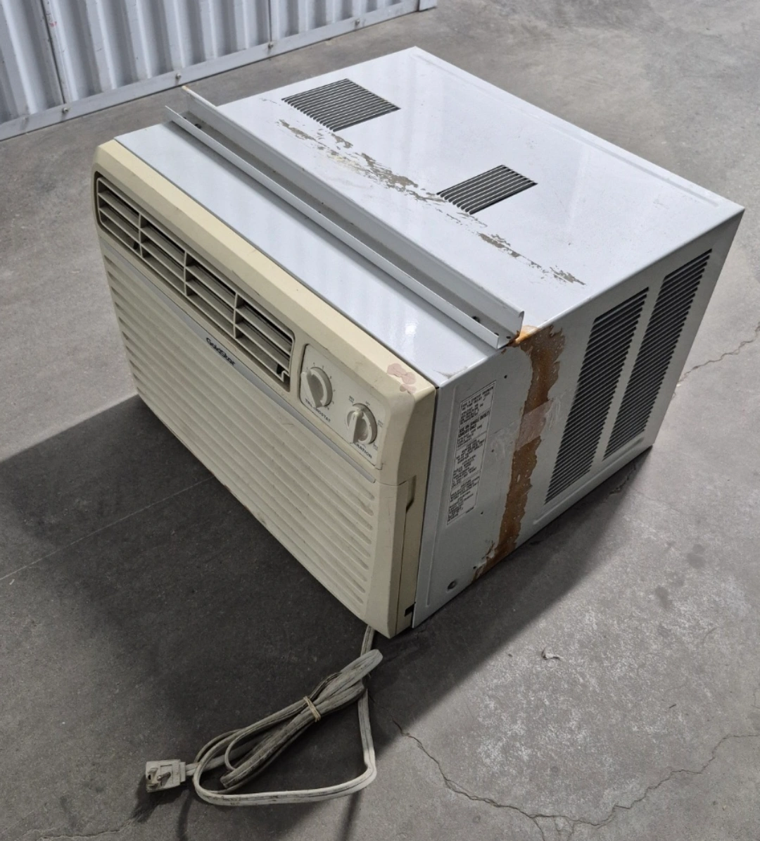 Used GoldStar window air conditioner. Features adjustable thermostat and operation settings.