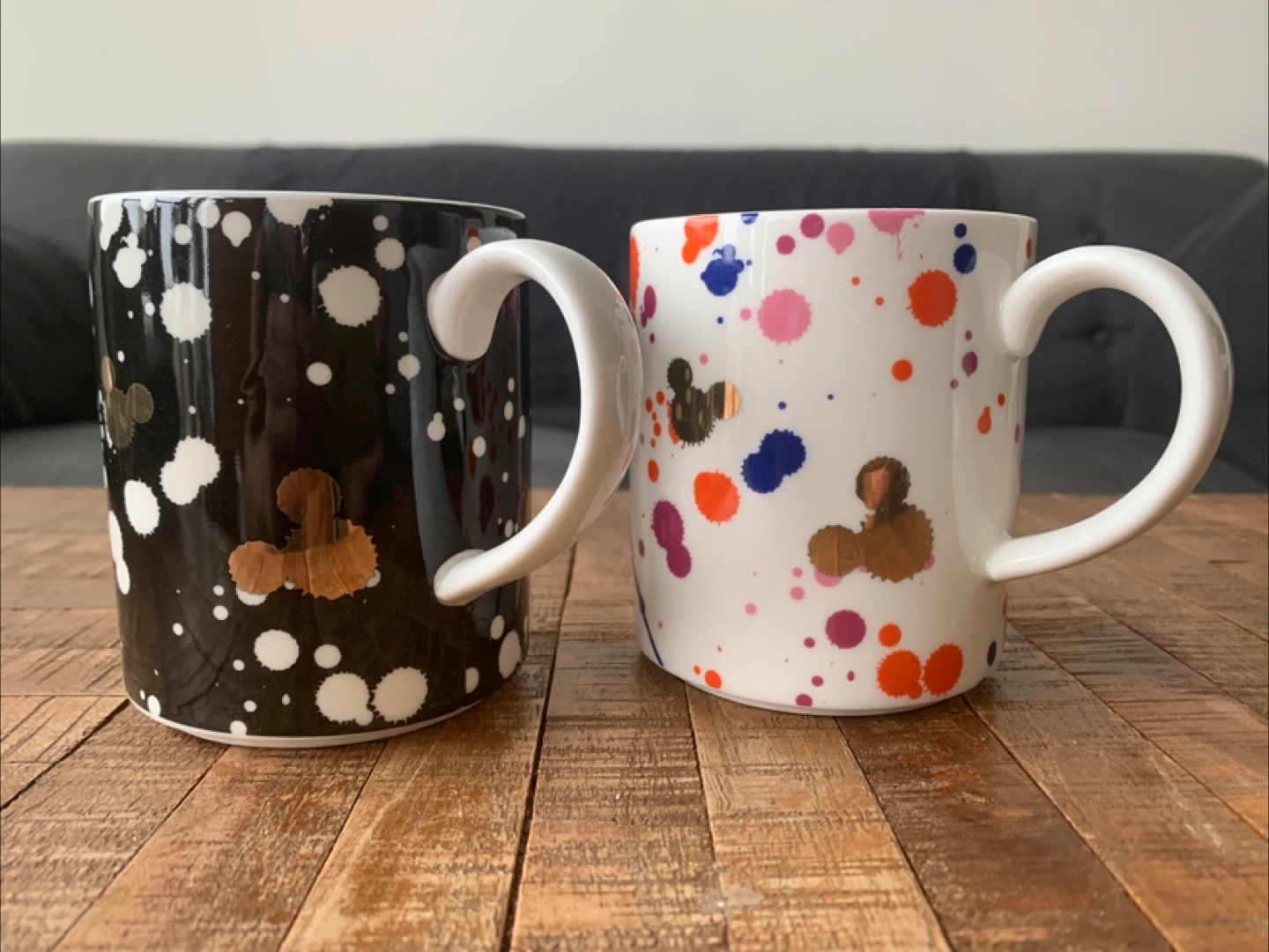 Brand new, pair of mug cup set Kawaii collection Japan. One with black and white spots. The other mug with various colour spots. Perfect for your morning coffee or tea.