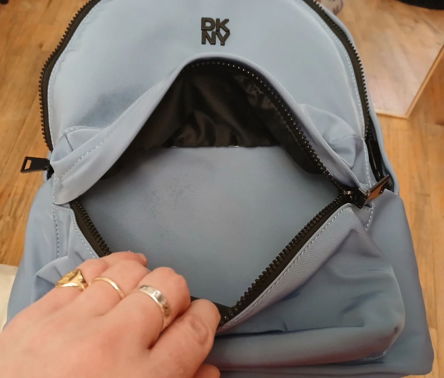 The interior lining has the DKNY logo pattern.