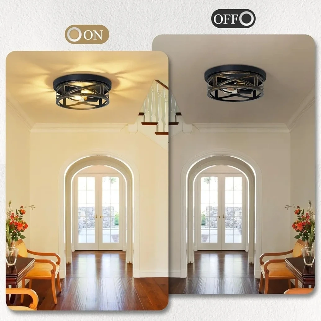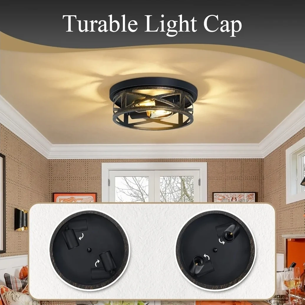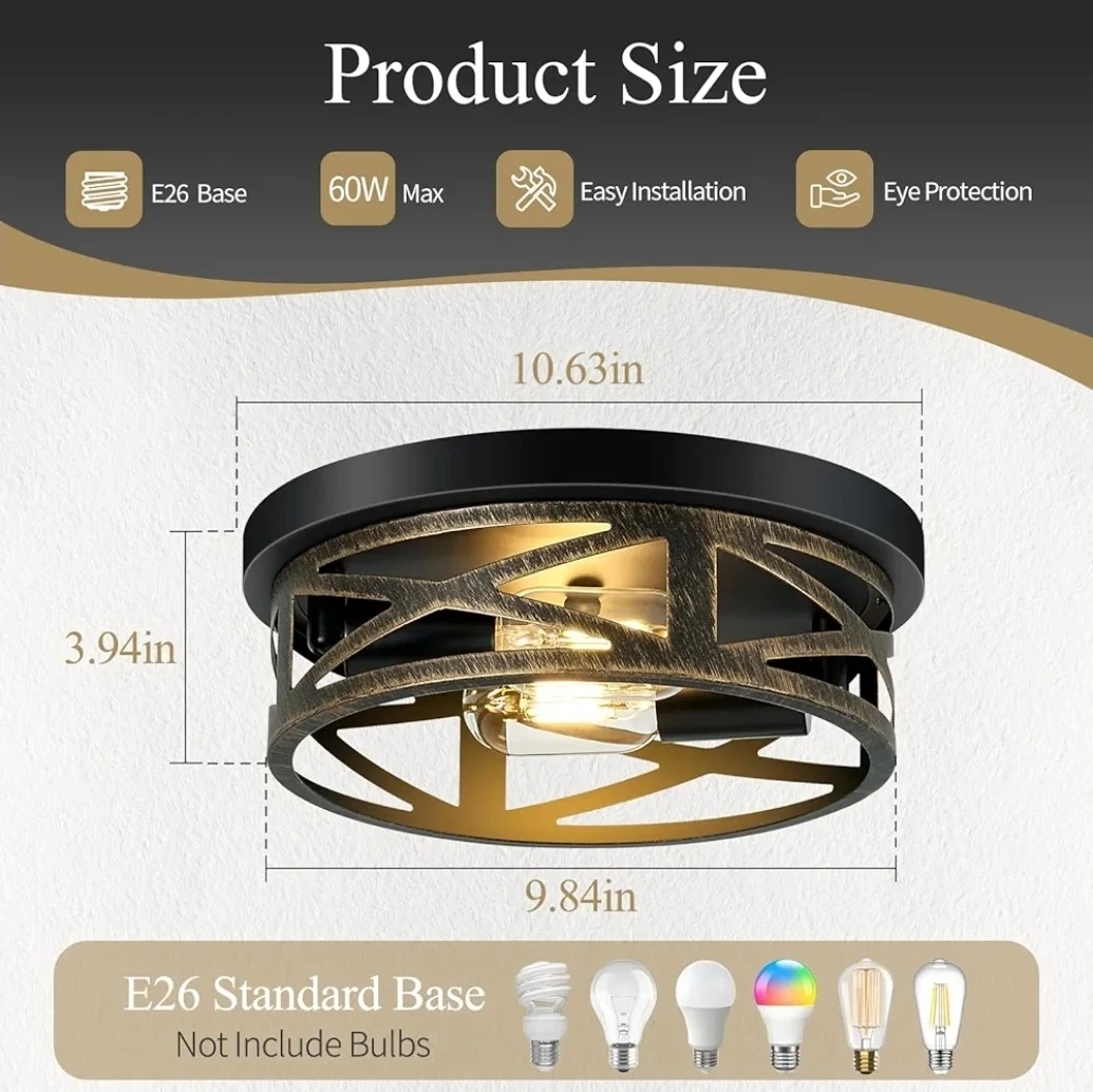 This SKEJAO flush mount ceiling light features a sturdy frame and reliable lamp holder. The light cap is turnable for easy adjustment. It uses an E26 standard base with a 60W max bulb. This light fixture is suitable for hallways, kitchens, or bedrooms.