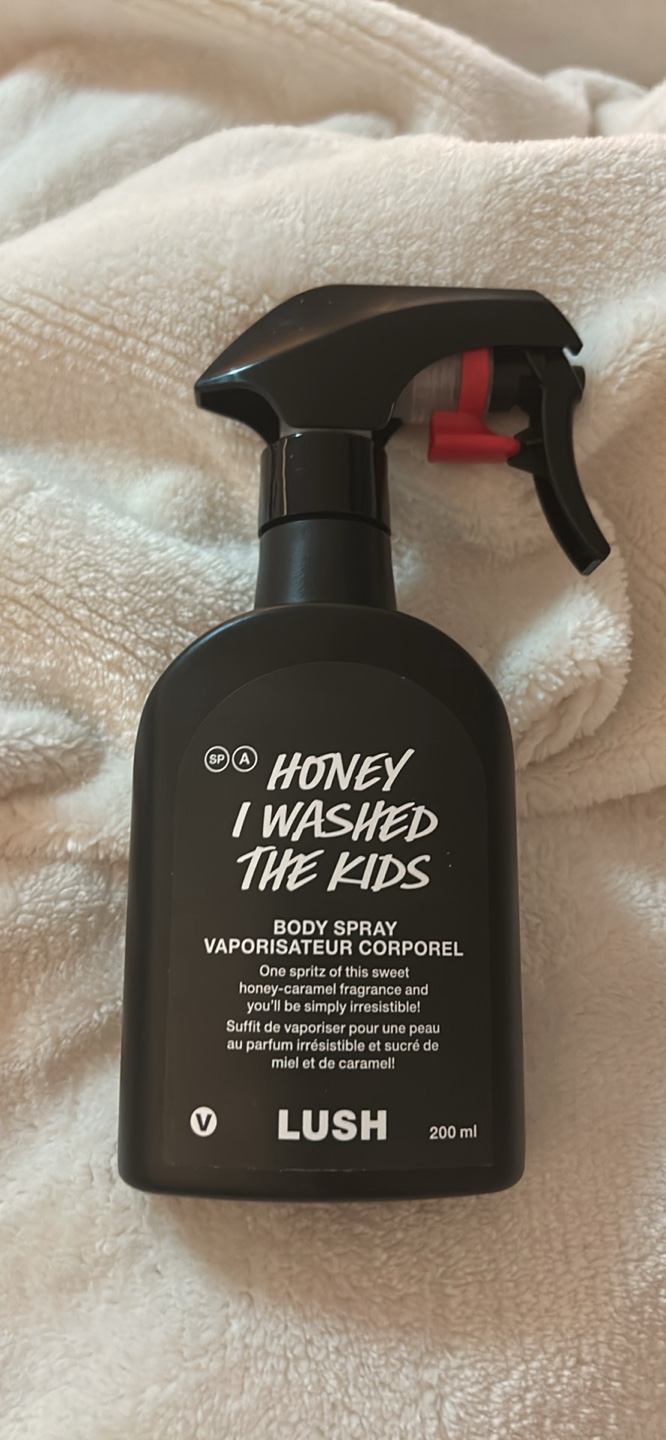 Selling a Lush Honey I Washed The Kids body spray. It's a sweet and comforting scent with notes of honey, caramel, citrus, and vanilla. The bottle contains 200ml of product. Perfect for a quick spritz of sweetness!