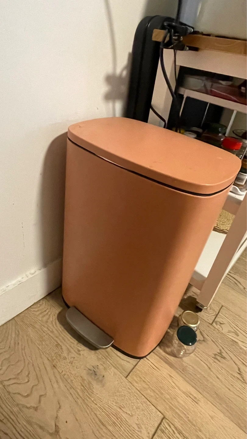Brabantia pedal bin in a lovely terracotta color. It's a sturdy bin with a foot pedal for easy opening. Perfect for any kitchen or office space!