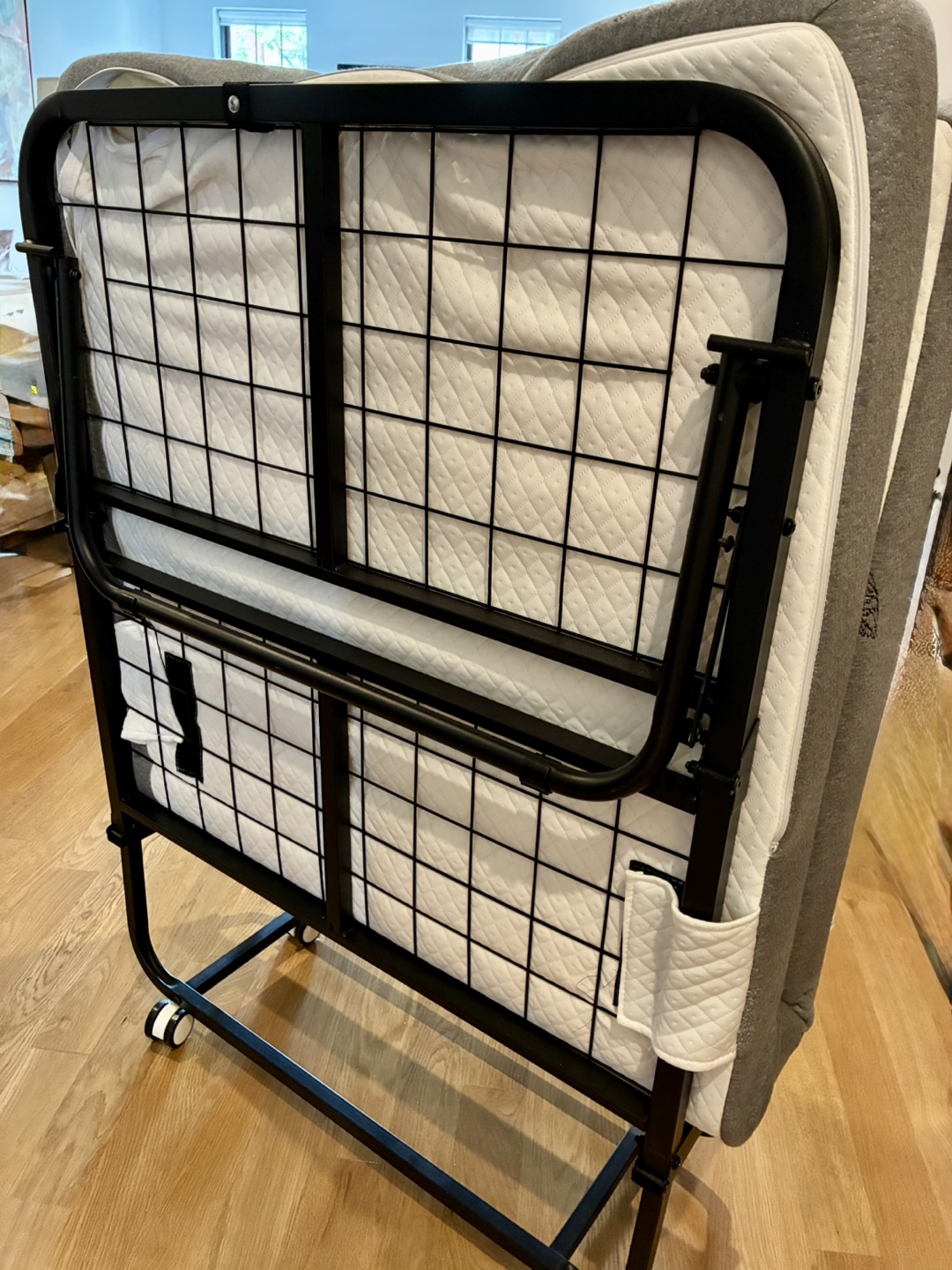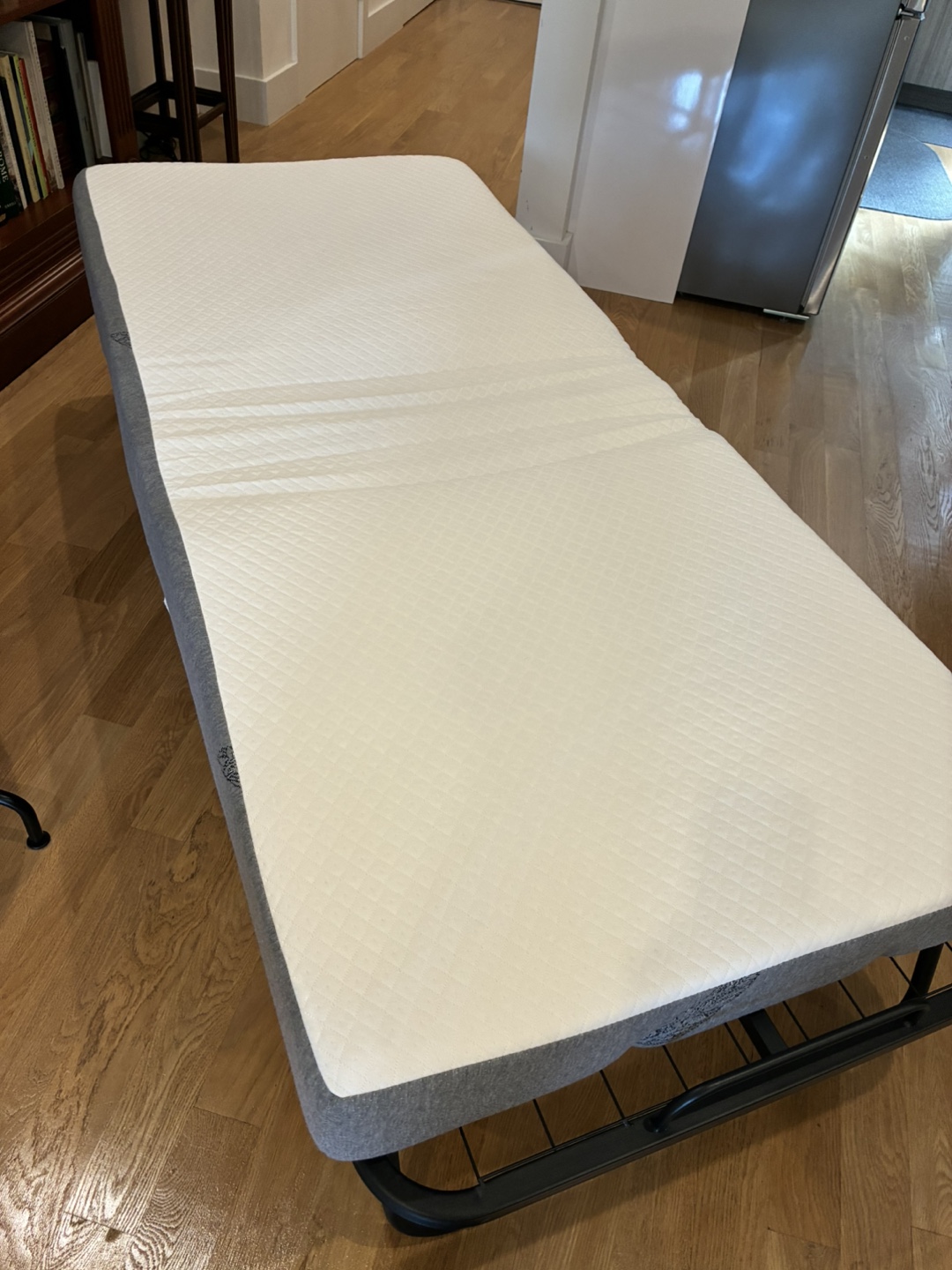 Selling a folding bed (LIKE NEW) perfect as a portable guest bed! It's in great condition - memory foam mattress - and folds up for easy storage. Bought for a guest but used only ONCE and with a topper. Check the pics for the actual like new conditions. Link to site (where I bought it)