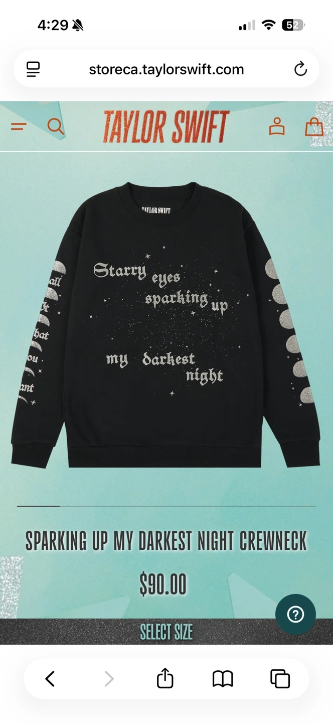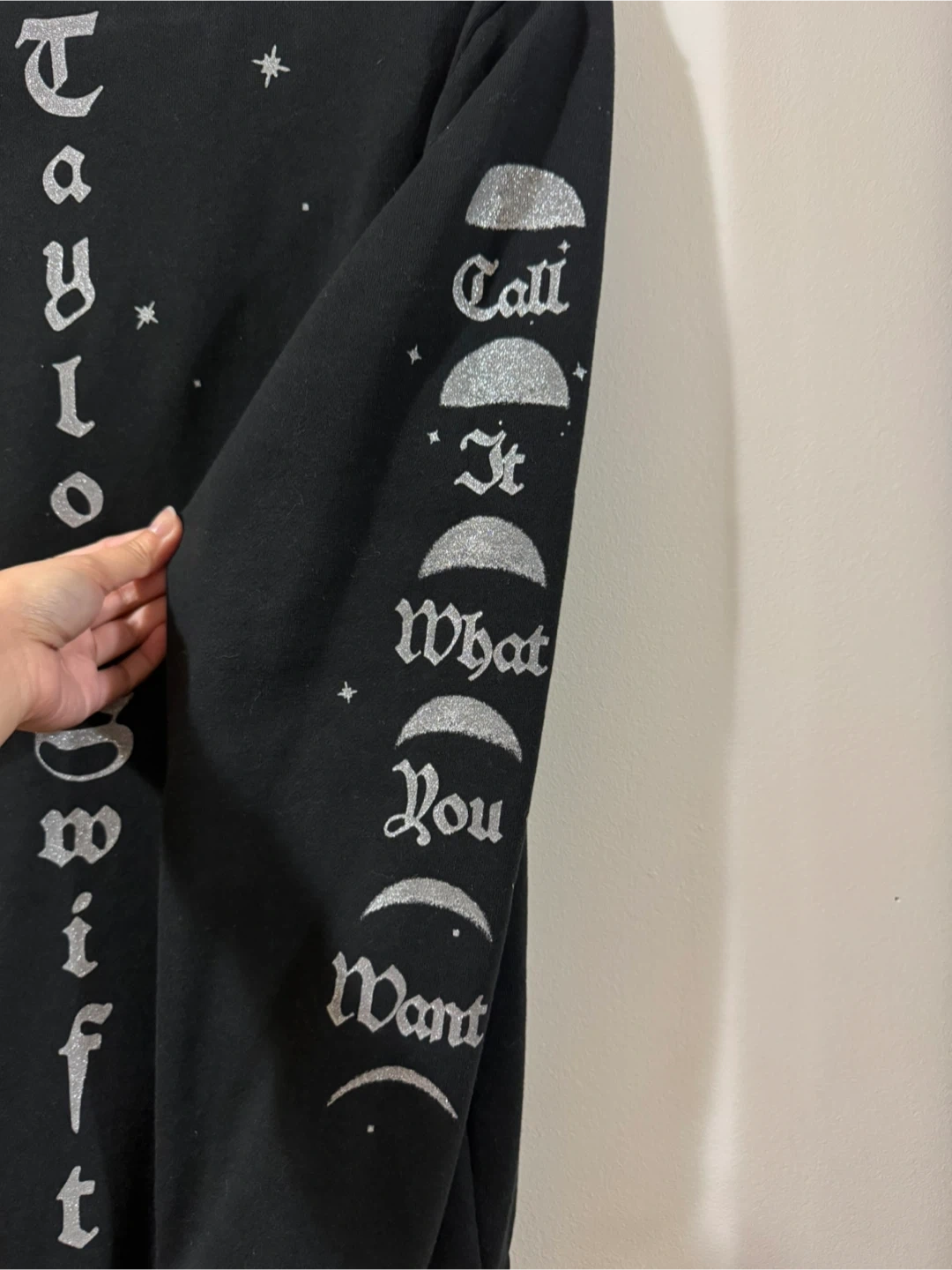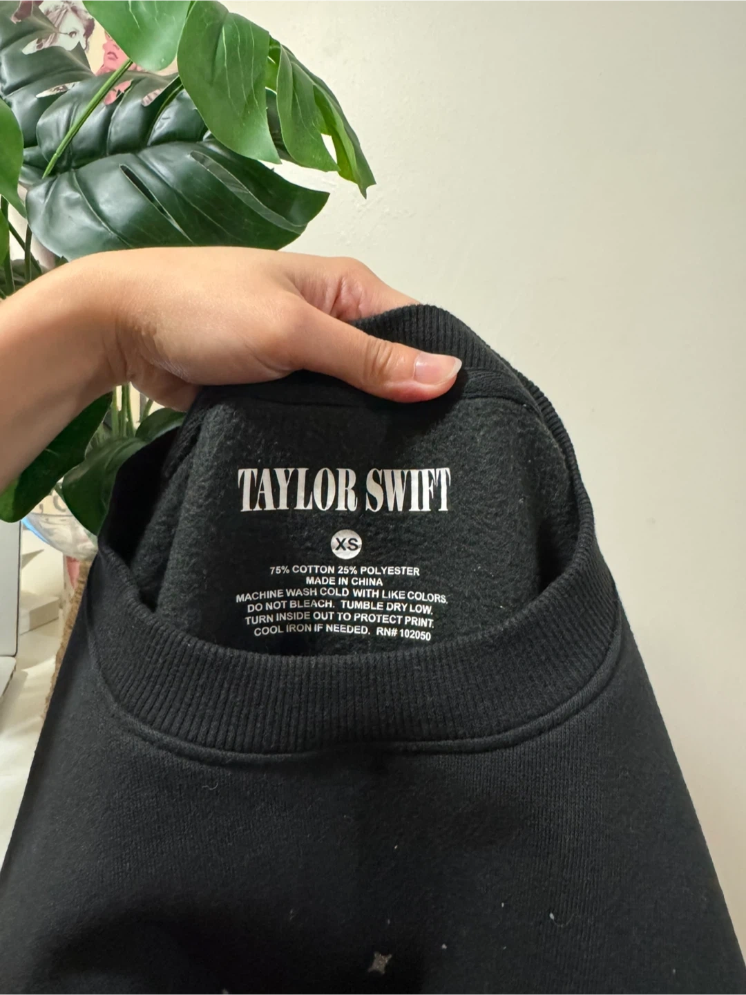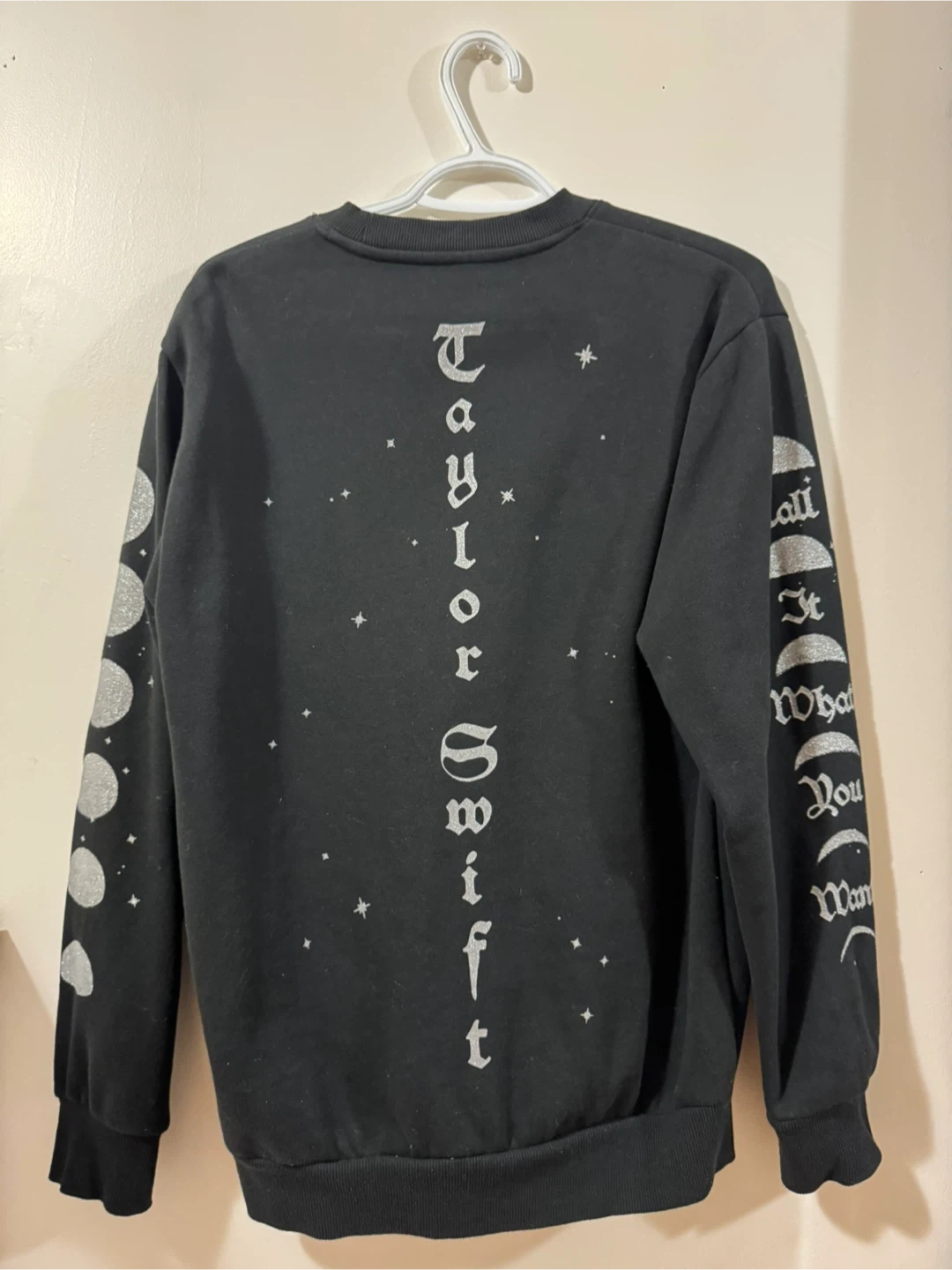 Authentic “Sparking Up My Darkest Night” Taylor Swift sweater. Paid $90 plus tax. Selling for $70. Size is XS. Fits XS-Medium. It's made of 75% cotton and 25% polyester. Only worn once. Pick up or meet up in Mississauga. Burnhamthorpe and Erin Mills. DM for more info😊