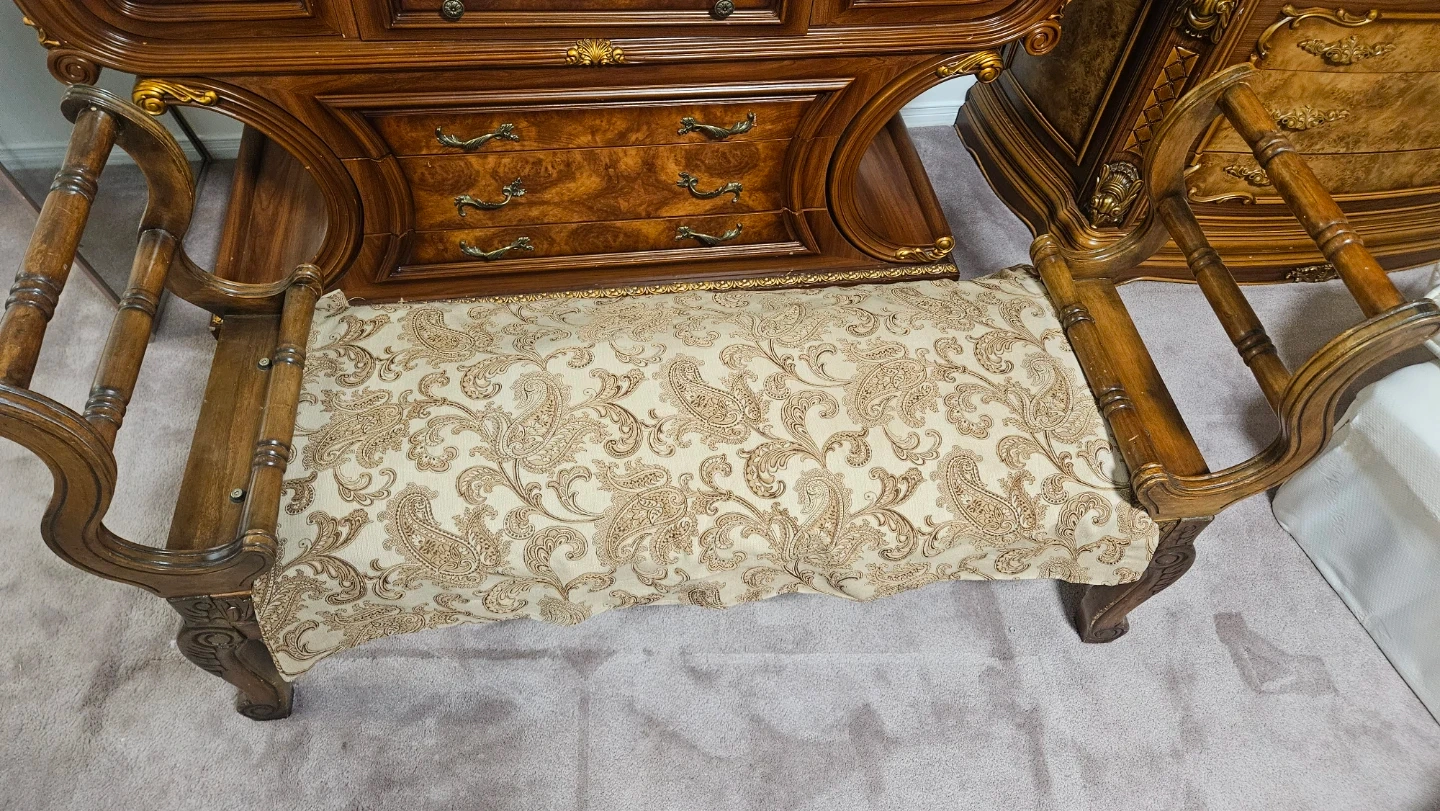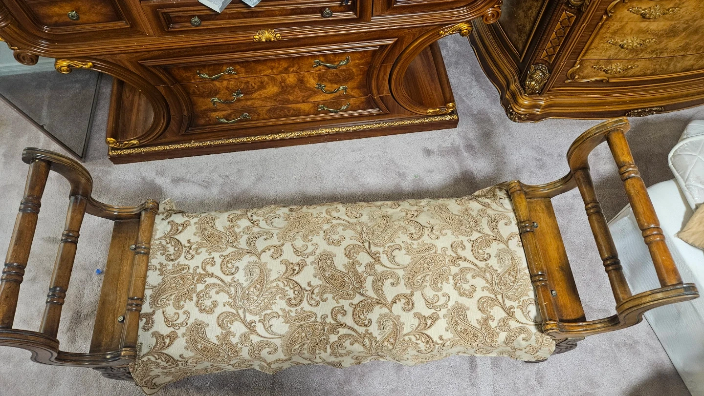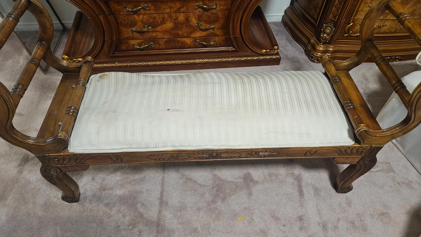 Buy & SellVintage Style Wooden BenchVintage Style Wooden Bench$50Selling a vintage-style wooden bench. It has a cushioned seat that could use a cleaning. The frame is ornately carved wood.ÉtatGoodWHERE TO MEETCheck LocationView MapSELLERFarahRougemount362 reviews0 chats·0 favorites·56 viewsSEND CHAT TO SELLERHi Farah! I’m interested in your listing.Hi Farah! I’m interested in your listing.Get the Karrot app to chatSign In to chat