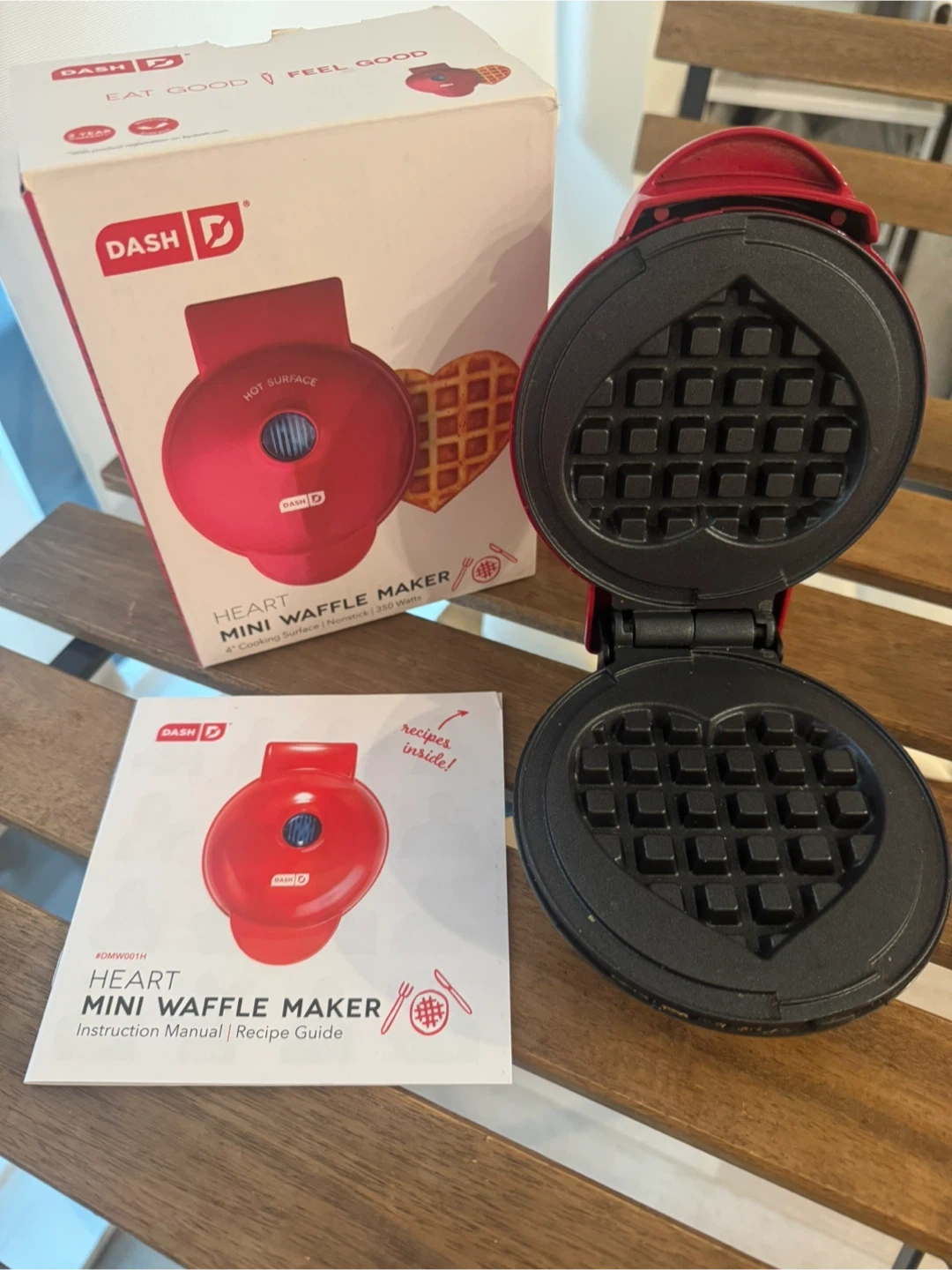 Selling a DASH Heart Mini Waffle Maker in excellent condition! It makes the cutest heart-shaped waffles. The box is included, along with the instruction manual and recipe guide. Perfect for a fun breakfast or dessert!