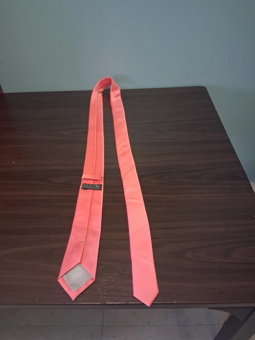 A Sestini Exclusive Collection tie in a lovely peach colour. It's made of 100% polyester and is hand-made. This tie would be suitable for special occasions or to add a touch of colour to formal wear.