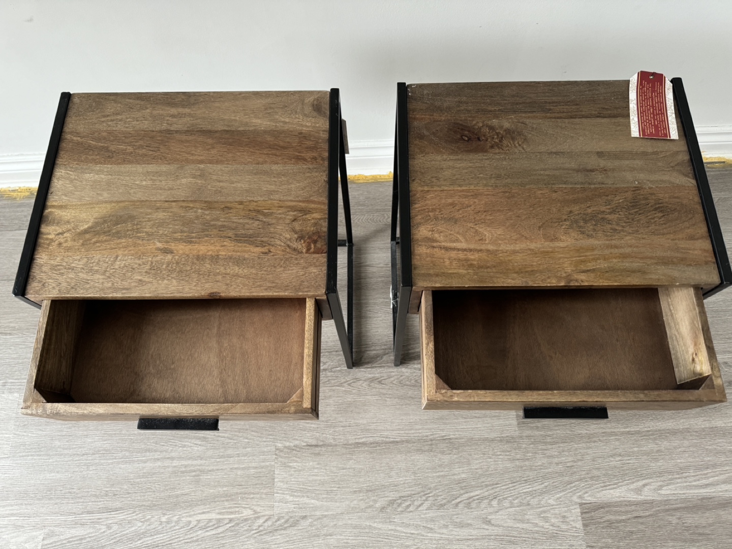 1 / 31 / 3Buy & SellPair of Wooden Nightstands with Metal FramePair of Wooden Nightstands with Metal Frame$120Two matching nightstands. Brown wood top and drawer. Black metal frame. Minimalist design. Each has one drawer.ConditionNewDimensions18” x 14” x 24”WHERE TO MEETStarbucks at Canadian Tire Parking LotsView MapSELLERverifiedSophieBayview Village1298 reviews0 chats·0 favorites·23 viewsSEND CHAT TO SELLERHi Sophie! I’m interested in your listing.Hi Sophie! I’m interested in your listing.Get the Karrot app to chatSign In to chat