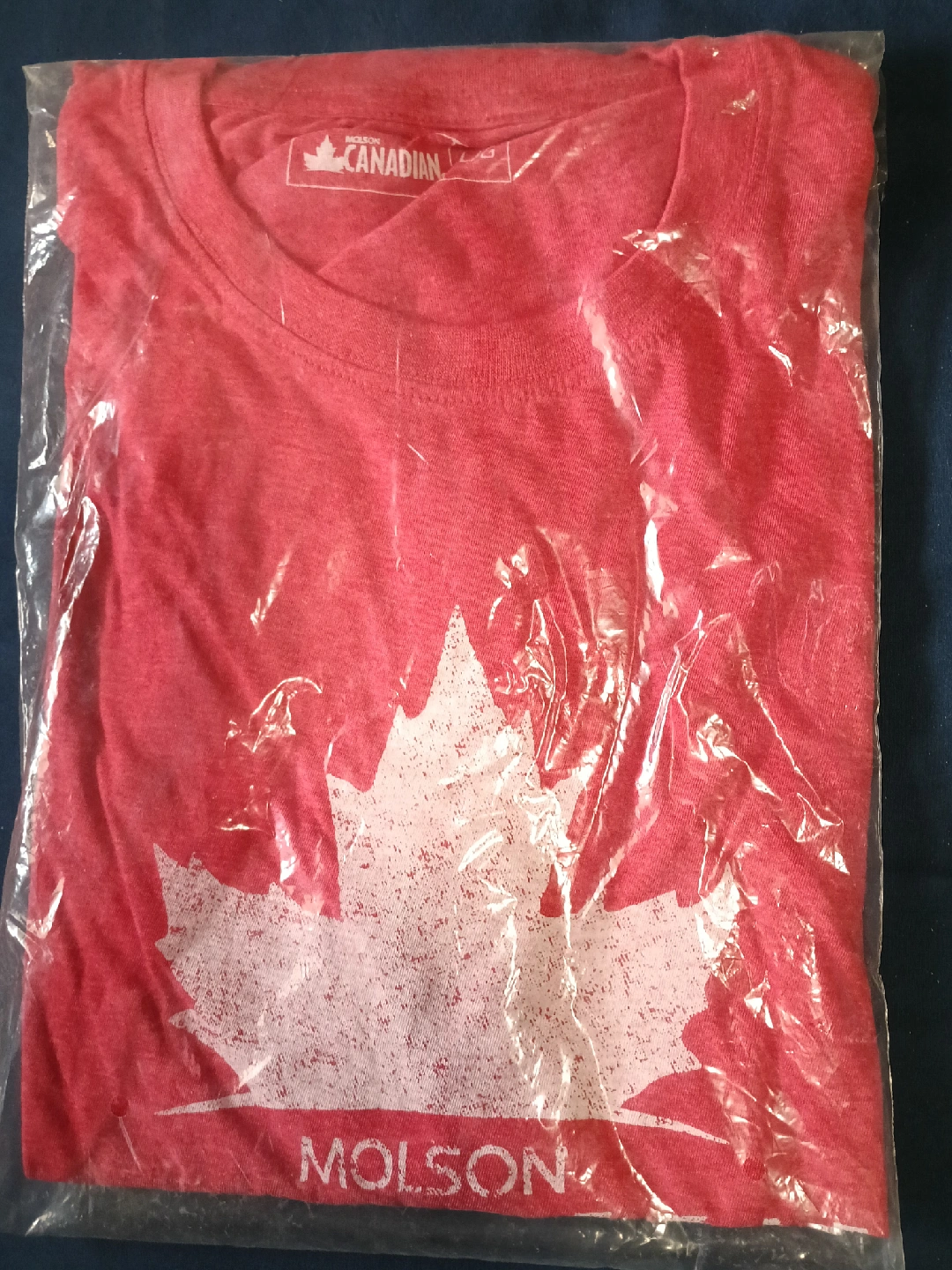 Selling a brand new Molson Canadian t-shirt! It's a red colour with a white maple leaf design. Perfect for showing off your Canadian pride!