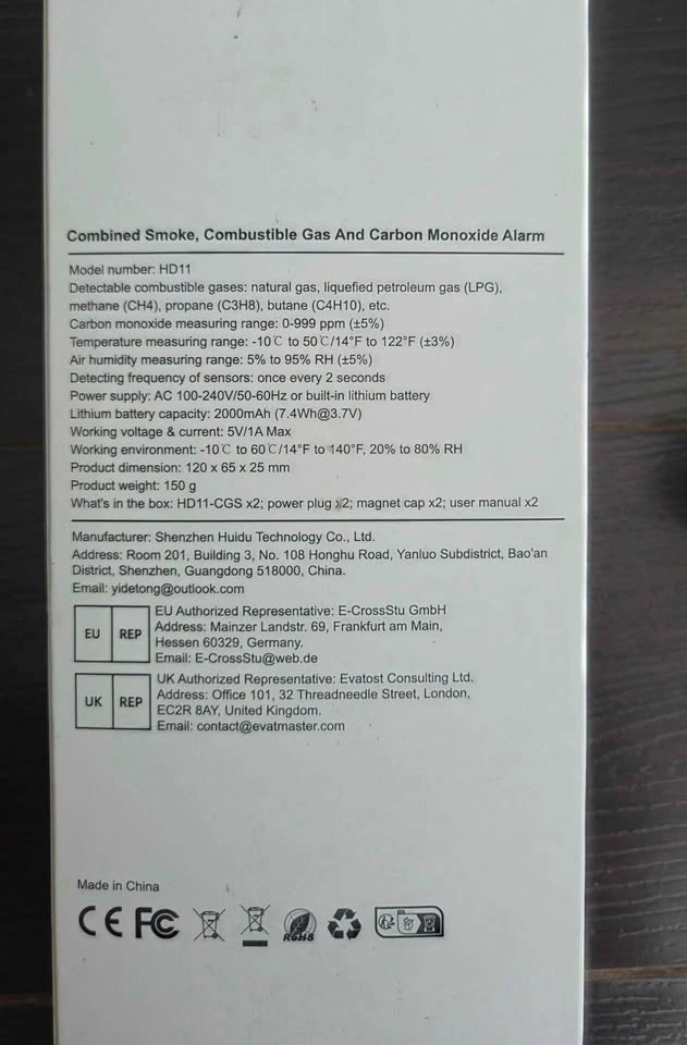 Combined Smoke Gas CO Alarm