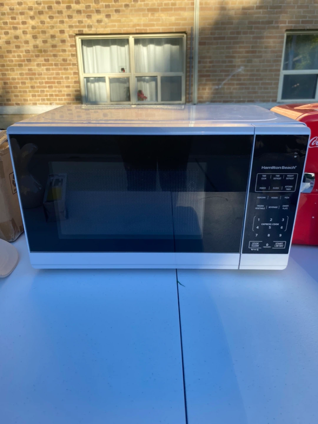 Selling a Hamilton Beach microwave oven. It has settings for cook, power, clock, and defrost. There are also express cook buttons!