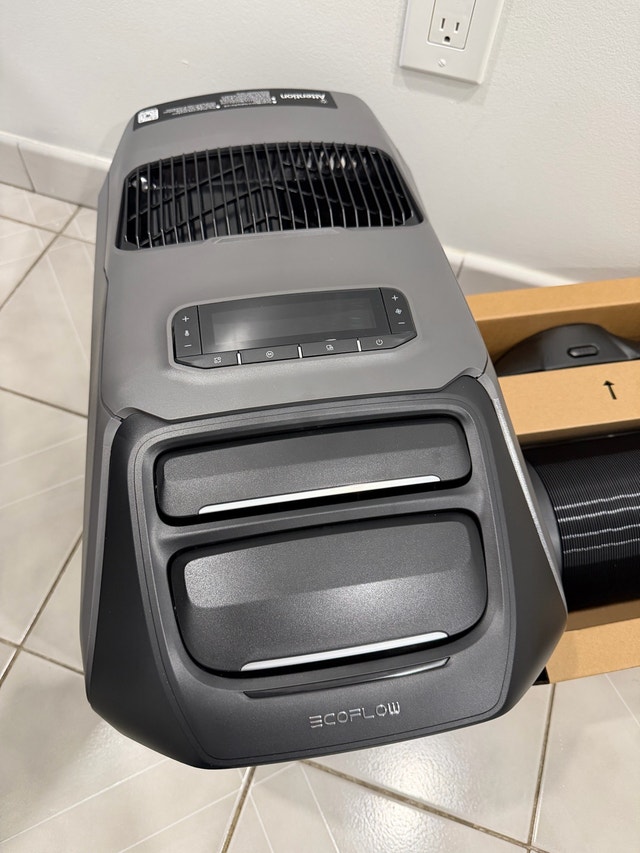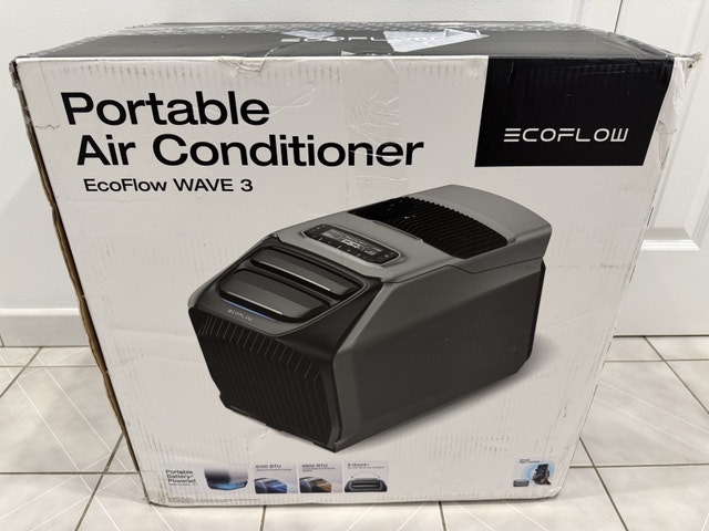 New, never used. EF ECOFLOW WAVE 3 Portable Air Conditioner with Add-on Battery, 1800W/6100 BTU Cooling and 2000W/6800 BTU Heating, 1000W Fast Charging in 75 mins, 8H Wireless Running, APP Control, for Camping, RVs. Portable, great for camping or ice fishing. Thanks.