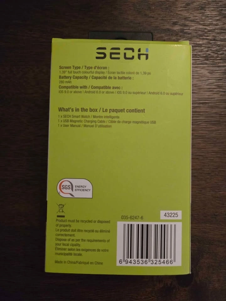 New SECH Smart Watch still in box. Has Bluetooth calling for calls right from your wrist. Also has multiple sport modes, heart rate monitoring, blood oxygen, sleep tracking, and step counter. Control camera and music too. Has a 1.39 inch full touch colorful display and 280 mAh battery. Compatible with iOS 9.0+ and Android 6.0+.