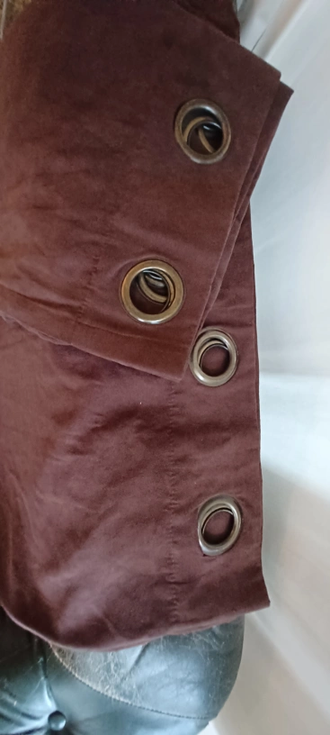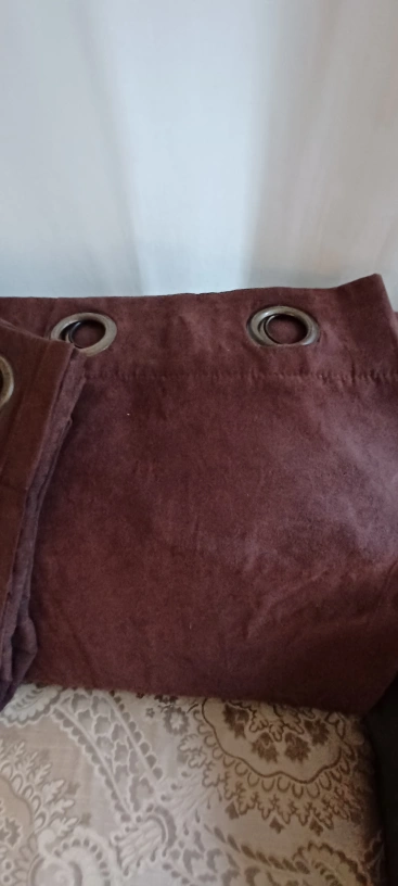 Dark brown suede finish Blackout curtains with metal rivets.