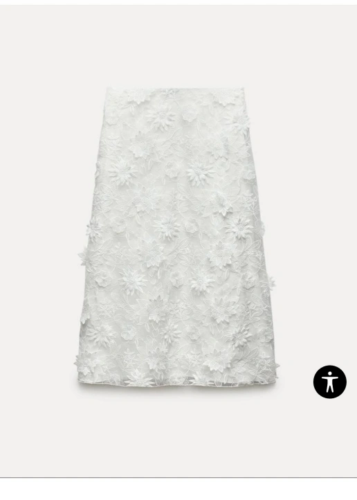 White floral skirt with a sheer fabric and 3D floral details. Size Large. Inside is lined. cash only. price is firm