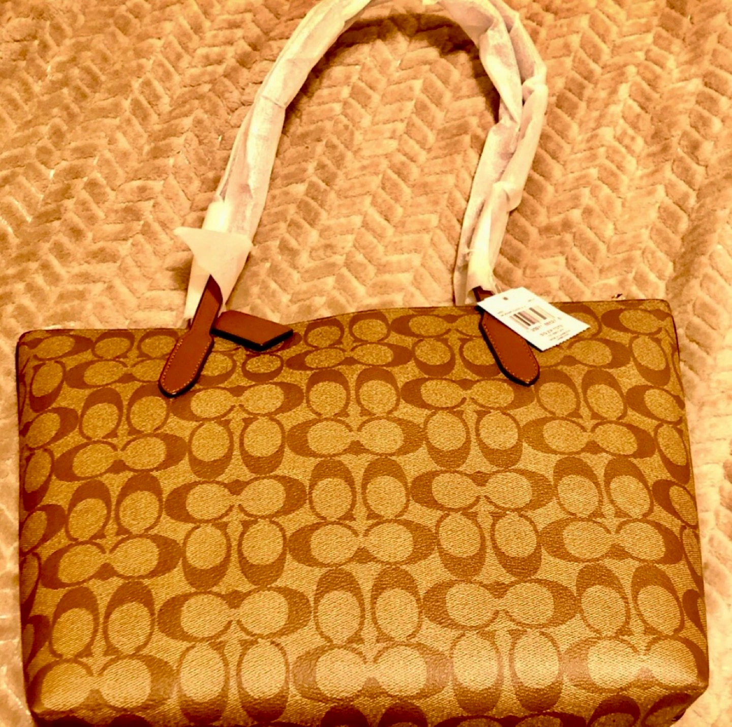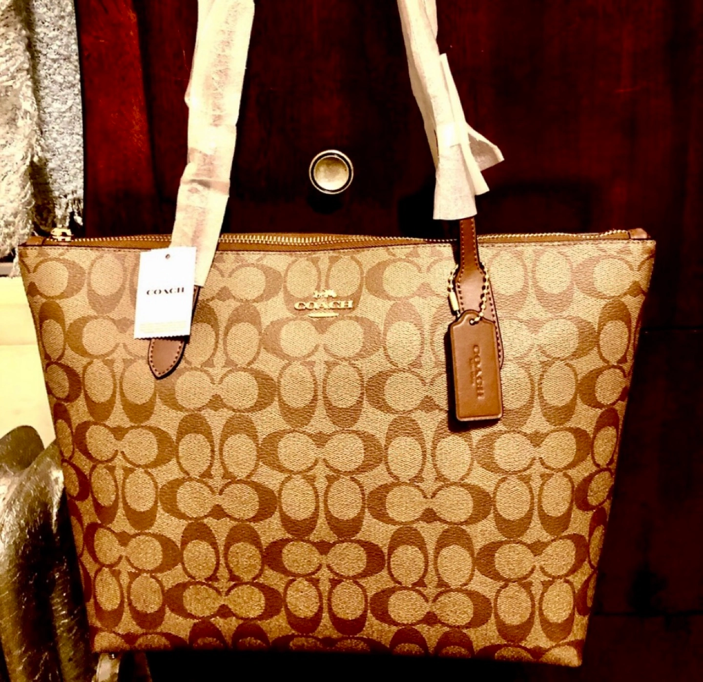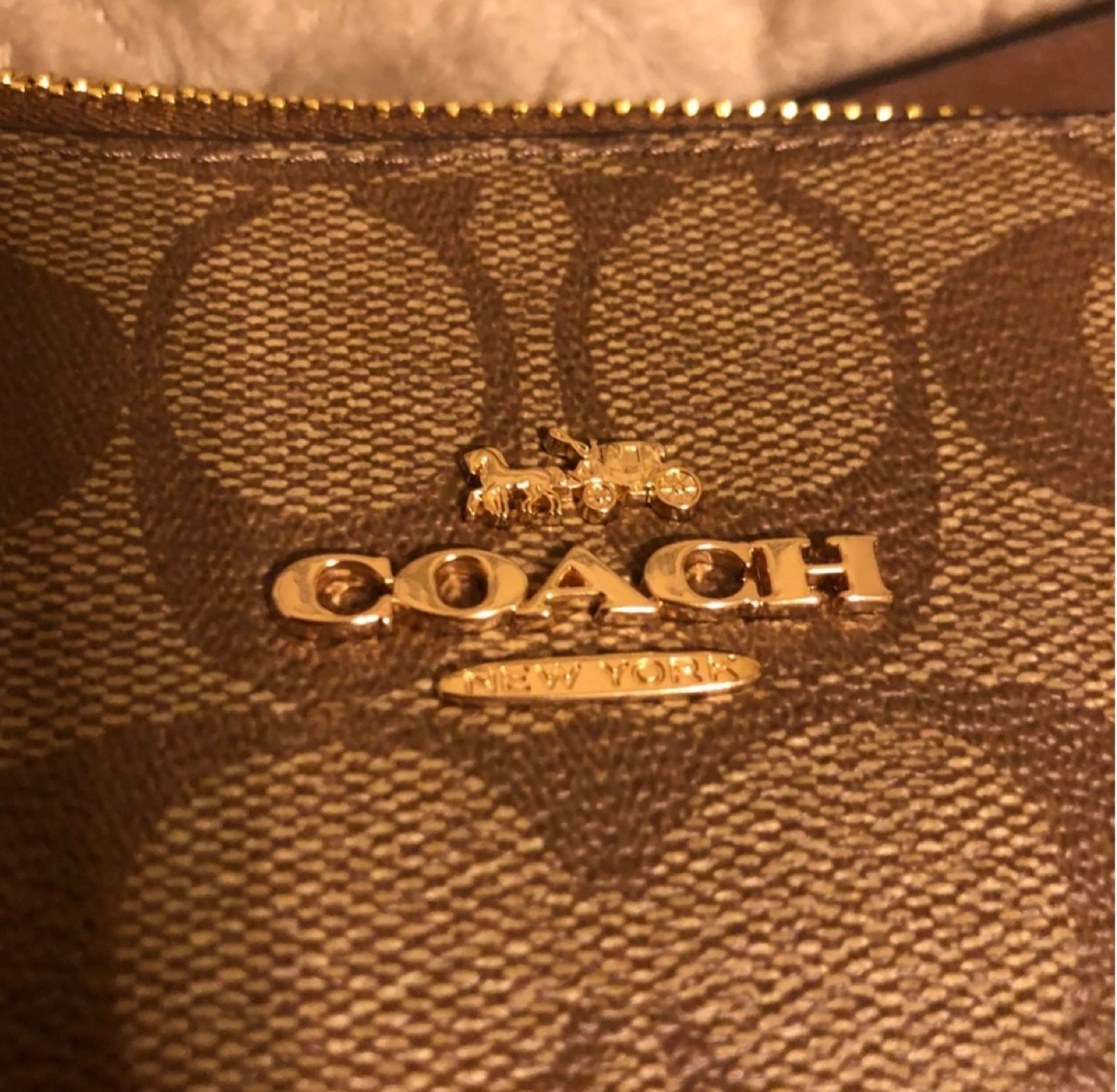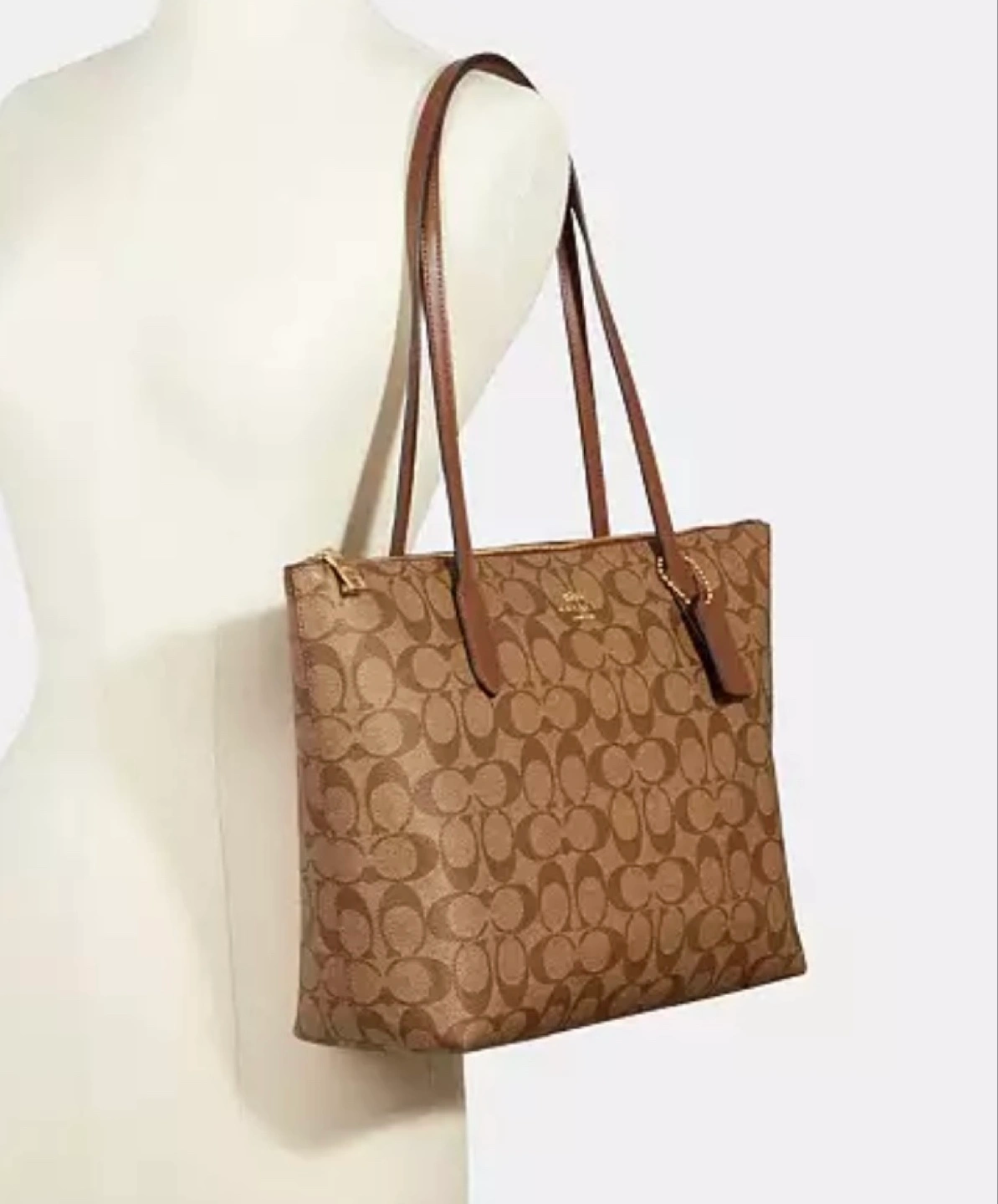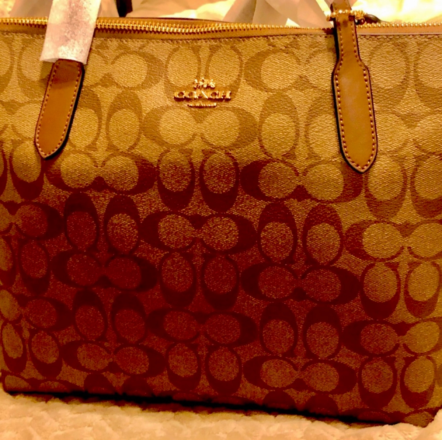 Beautiful Coach tote bag. Brown signature canvas. Gold-tone hardware. Zip top closure. Two top handles.