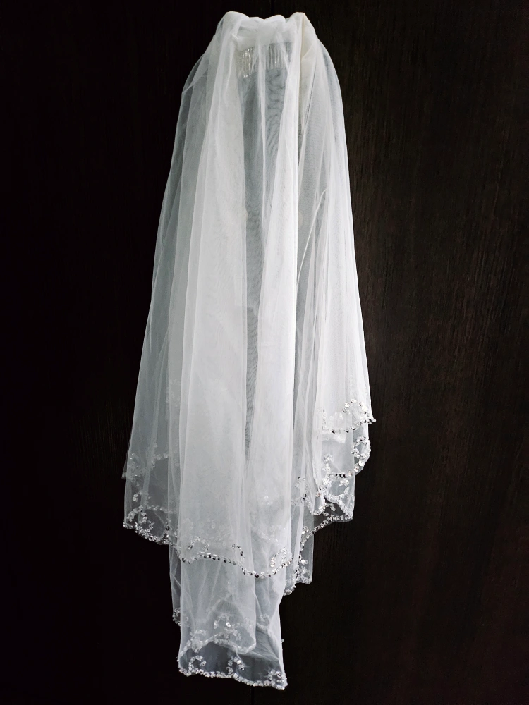 White bridal veil. Two layers. Beaded accents. Perfect for your special day.