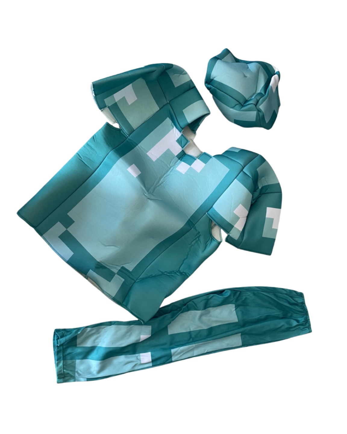 Selling a Minecraft armor costume! It comes with the full set: top, pants, and headpiece. The size is S, suitable for kids aged 5-6. It's in great condition and ready for a new adventure.