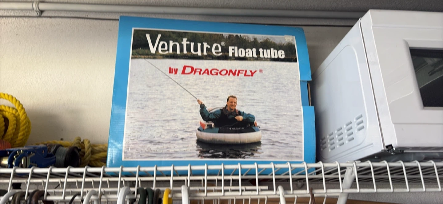 This is a Venture float tube by Dragonfly. It's designed for fishing or relaxing on the water. It's a durable float tube for your next outdoor adventure!