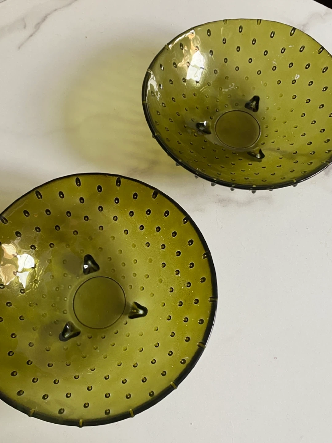 MCM Olive Hobnail Glass Bowls