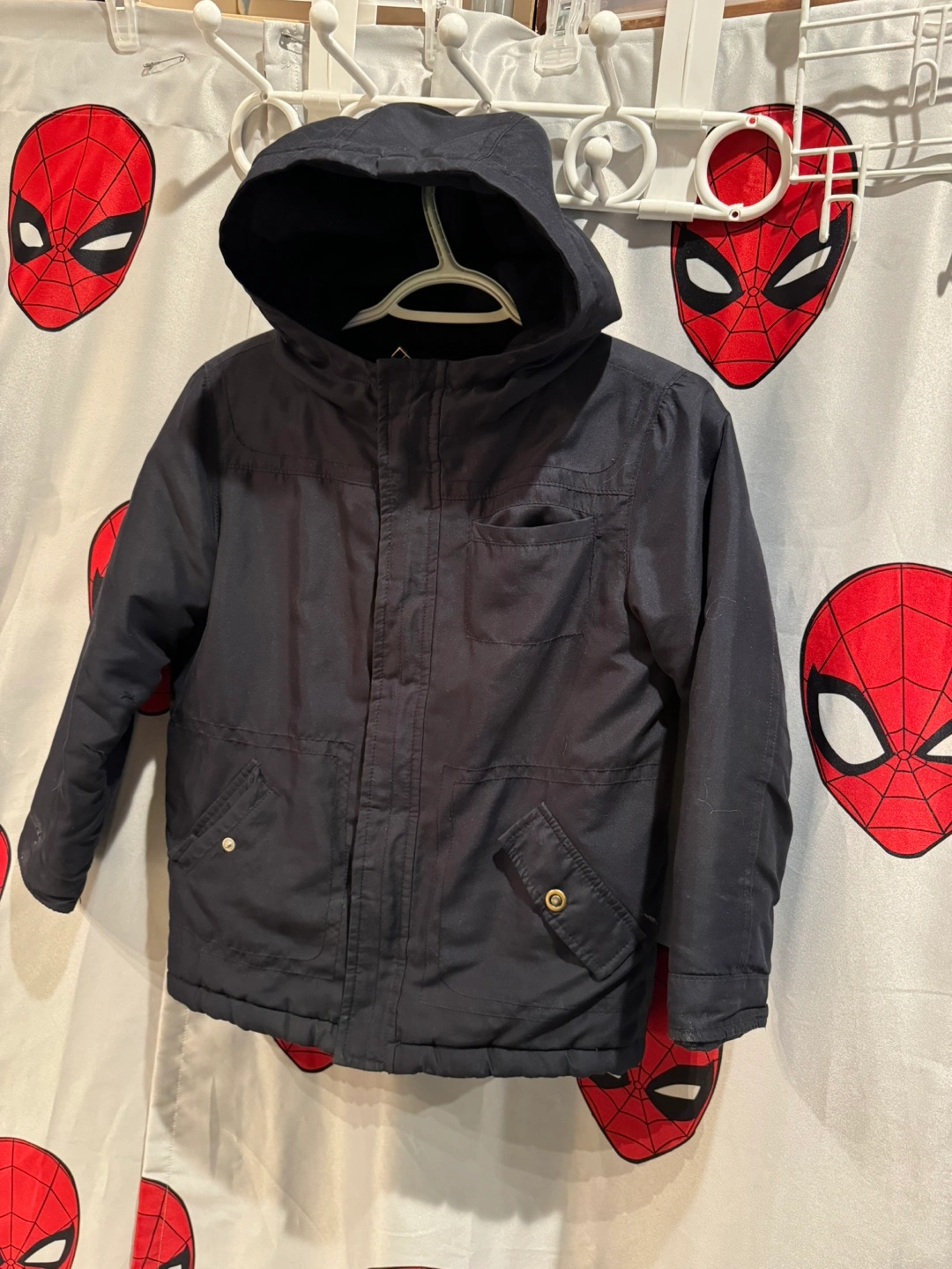 A cozy and warm winter jacket for kids from Gymboree! It's a size M (7-8) and perfect for keeping your little one snug during the colder months. The shell and lining are made of 100% polyester, making it durable and easy to care for