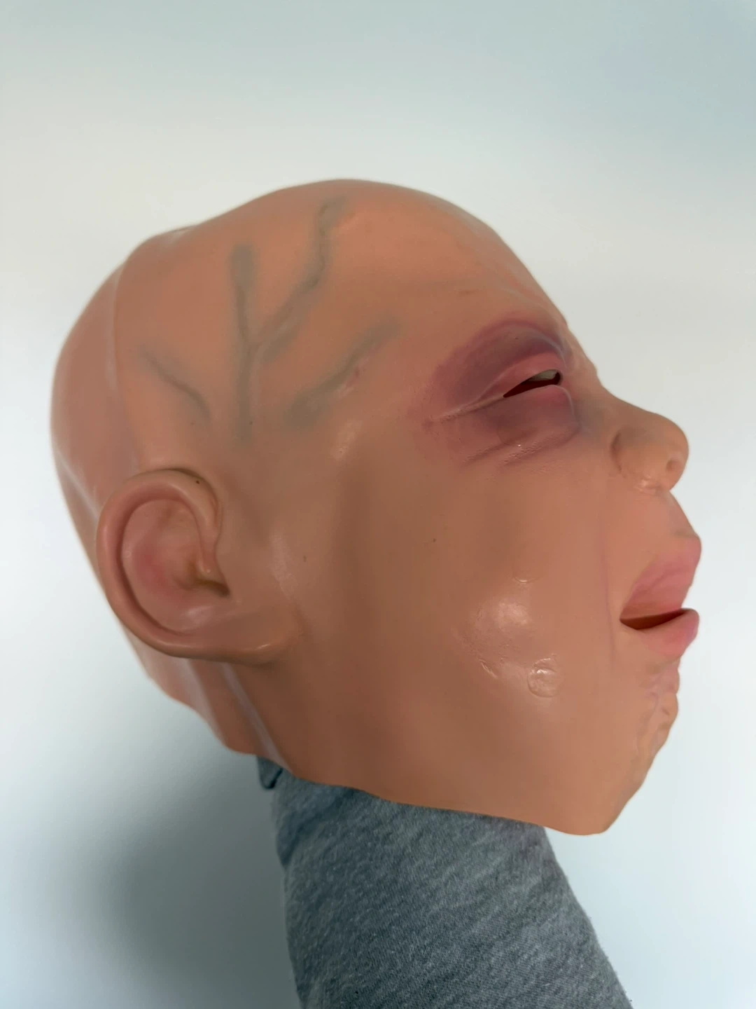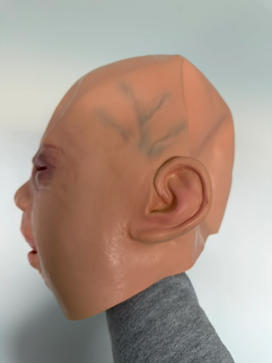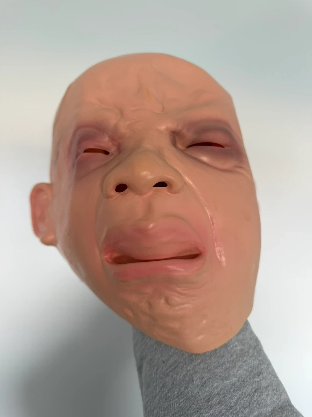 This mask has a realistic, unsettling baby face design. It's made of a flexible material for a comfortable fit. A great addition for Halloween or costume parties!