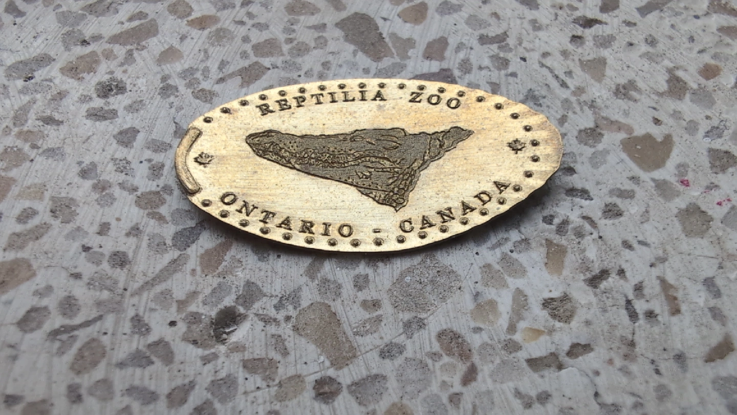 Selling a pressed penny from Reptilia Zoo in Ontario, Canada. It features an alligator design and is in great condition!