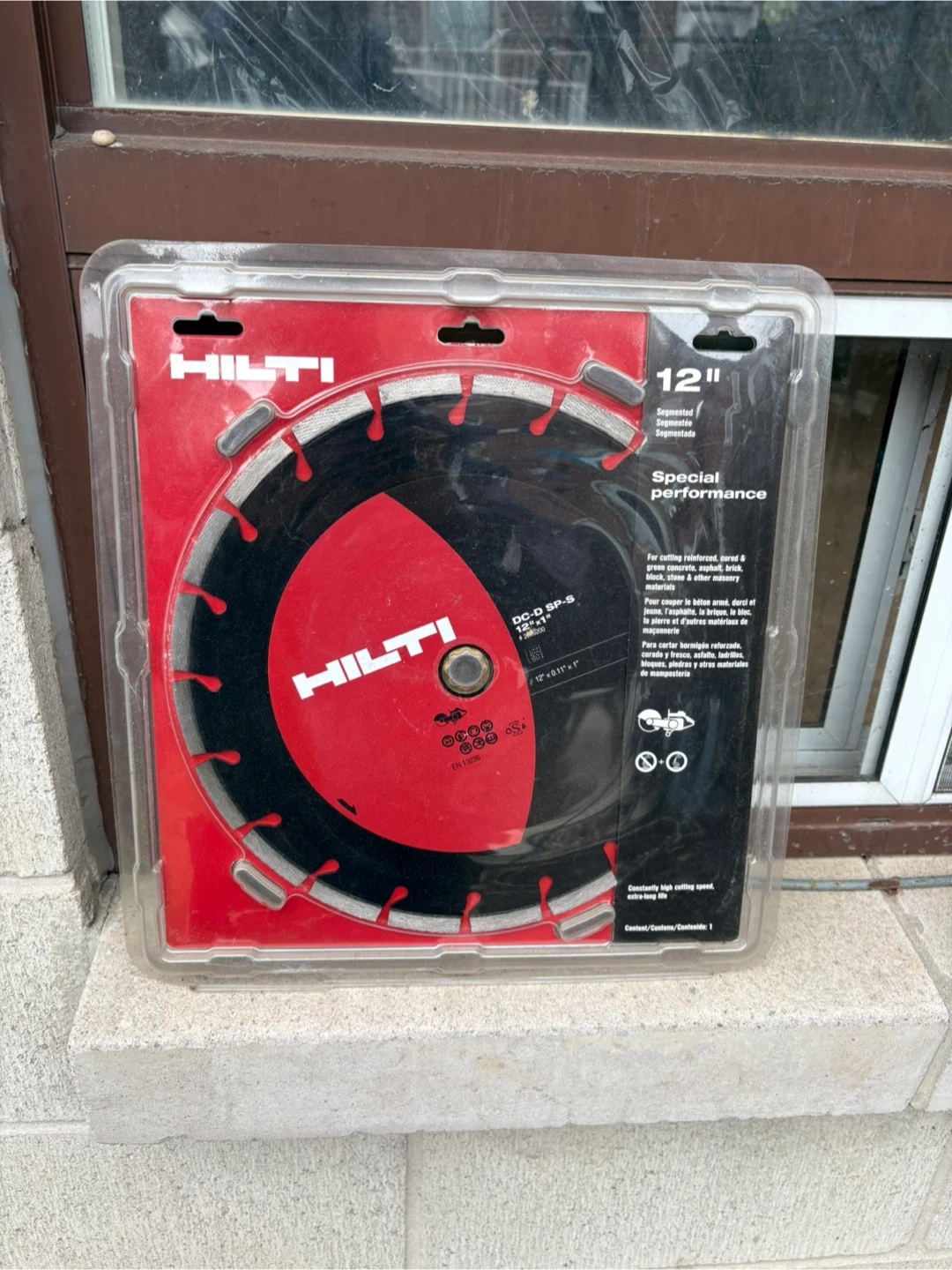 This is a new 12" segmented diamond cutting wheel from Hilti. It's designed for special performance, ideal for cutting concrete, brick, asphalt, block, and most masonry materials. The wheel is made with advanced technology for durability and efficient cutting.