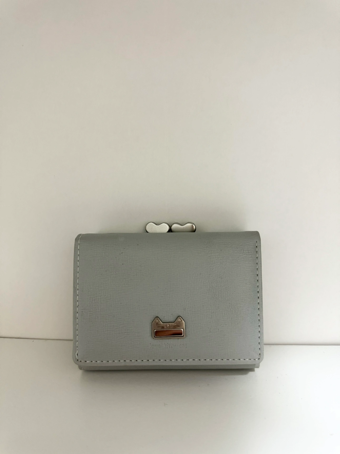 This stylish light gray purse is perfect for keeping your essentials organized. Featuring a sleek design with a cute metal cat emblem, it adds a touch of charm to any outfit.