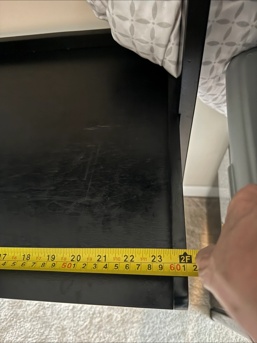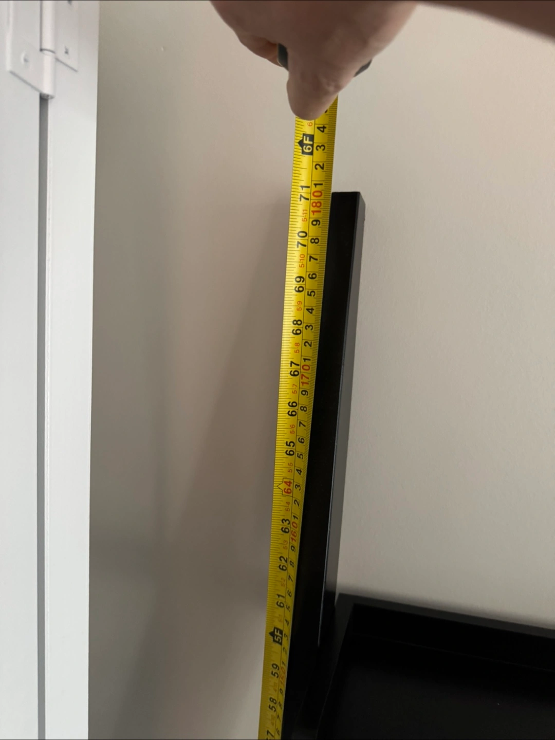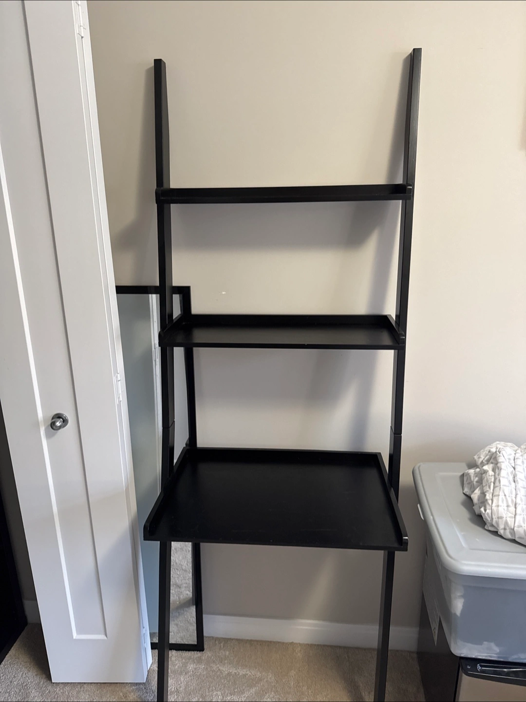 Selling a black ladder shelf desk. It's in good condition and would be perfect for a small space! The desk is approximately 6 feet tall (71ish) and the desk surface is about 24 inches wide 16 inches depth