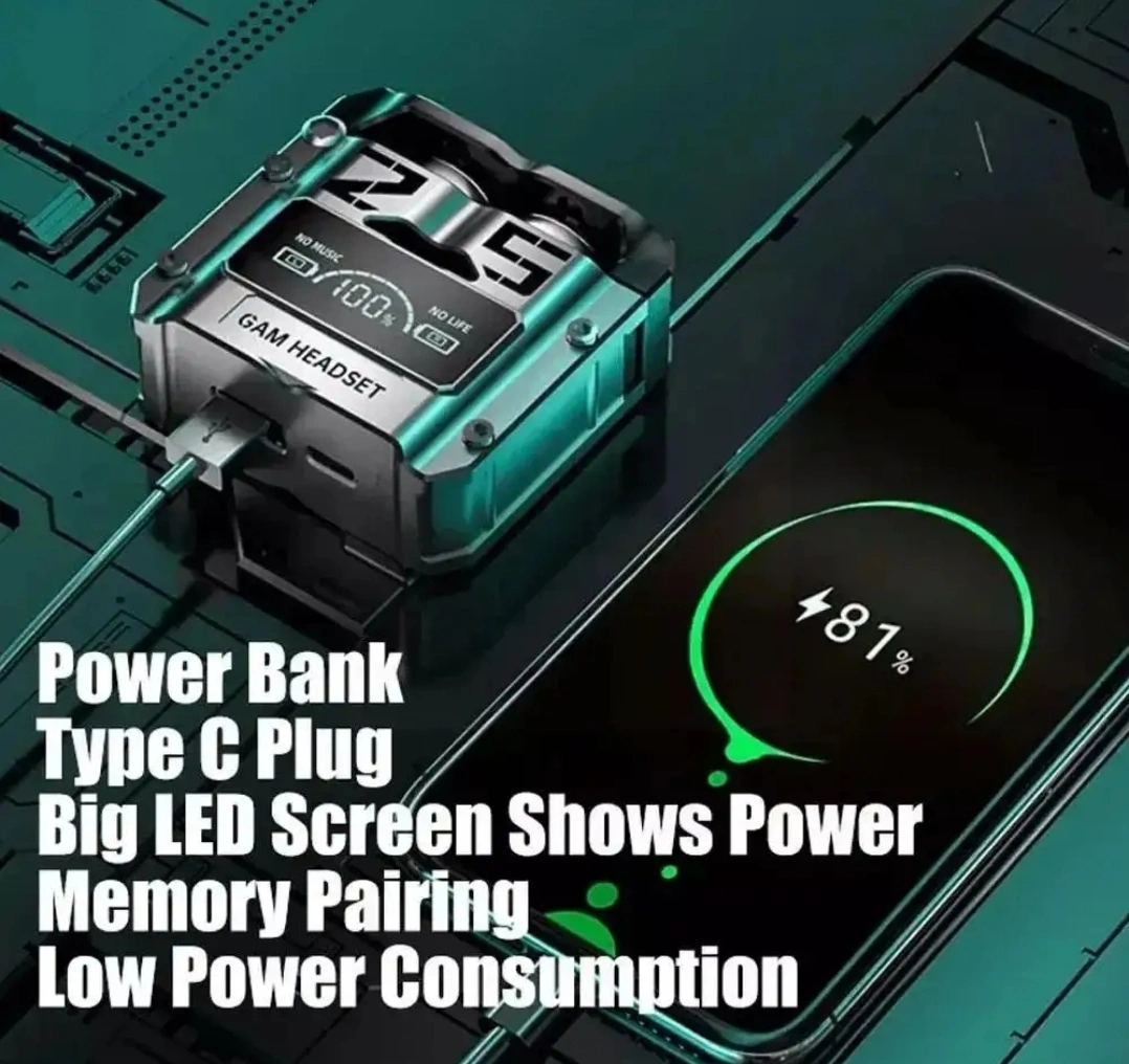 Brand new in the box. Pictures are of mine. I'm selling new in box. New style buds. Case also dubs as a charging bank for other devices. Connect to phone with each tap on buds for sound or answering calls. Case shows progress of charge or % left in battery life in each bud. Selling new in silver or black for $30 each